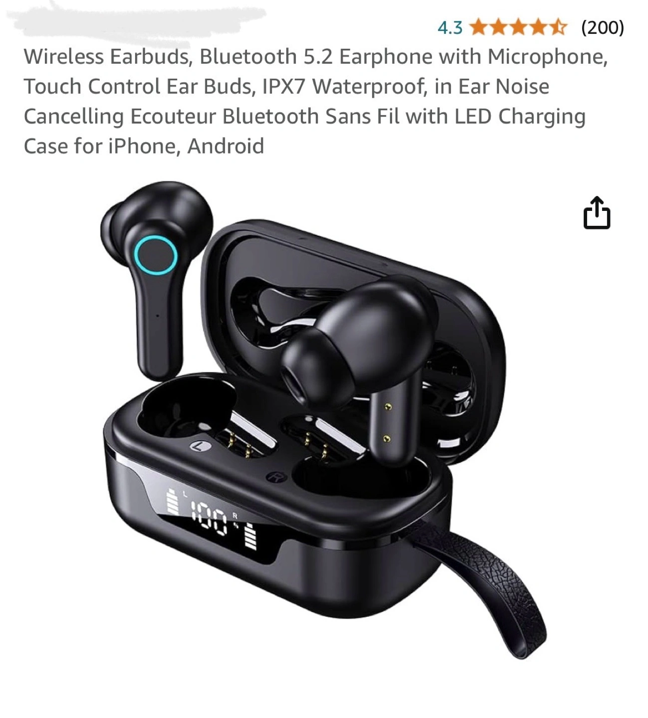 * 100 Hours of Play Time and LED Display: When fully charged, the earbuds wireless bluetooth can be used for up to 8 hours at a time. The charging box can provide about 95 hours of additional play time for the ecouteurs bluetooth. Its unique LED display technology can accurately display the remaining power in the charger.