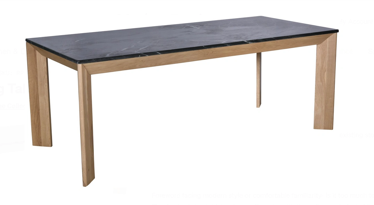 Stylish dining table. Features a black marble top and a sturdy oak frame with an angular design. Seats up to 8 people. Requires assembly. Moe's Home collection.