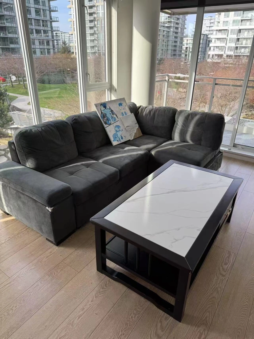 . Some minor wear and tear visible in images. Includes chaise lounge. Clean and comfortable. Pick up only.