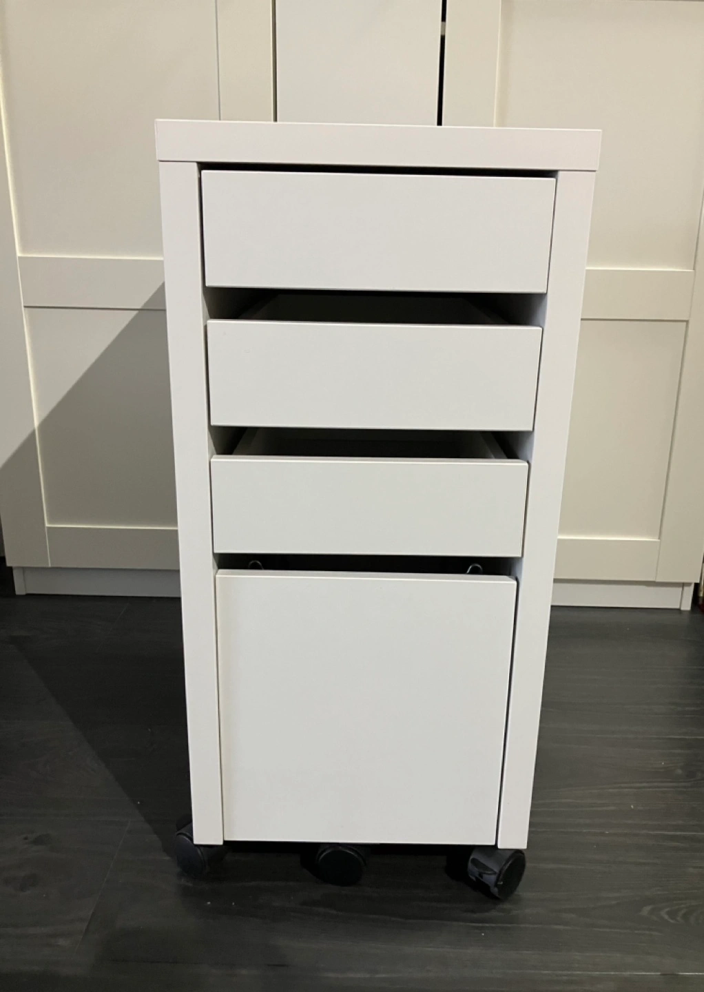 IKEA Micke three drawers plus a filing cabinet. Mobile with four casters. Great for office or home use. White finish.