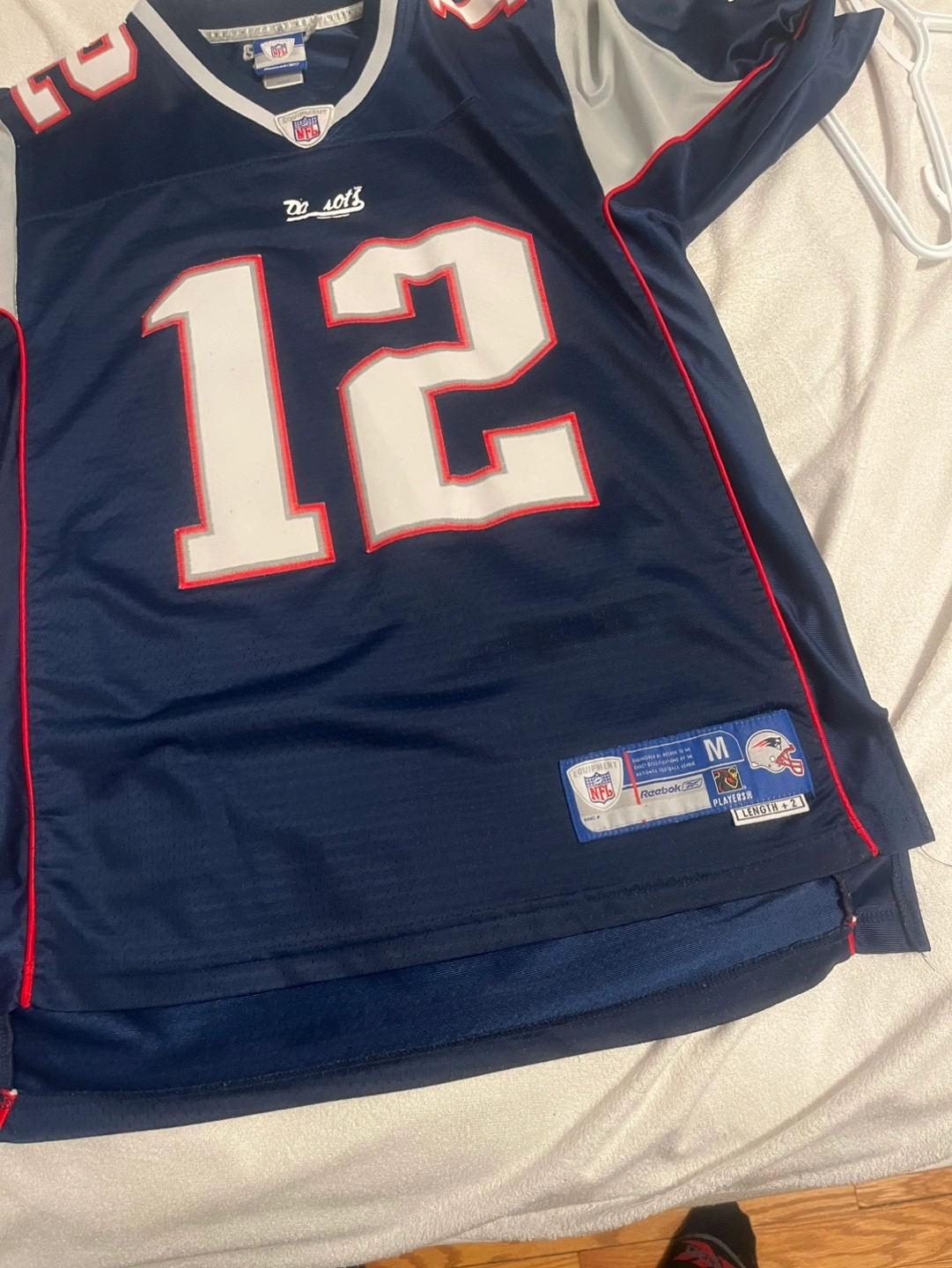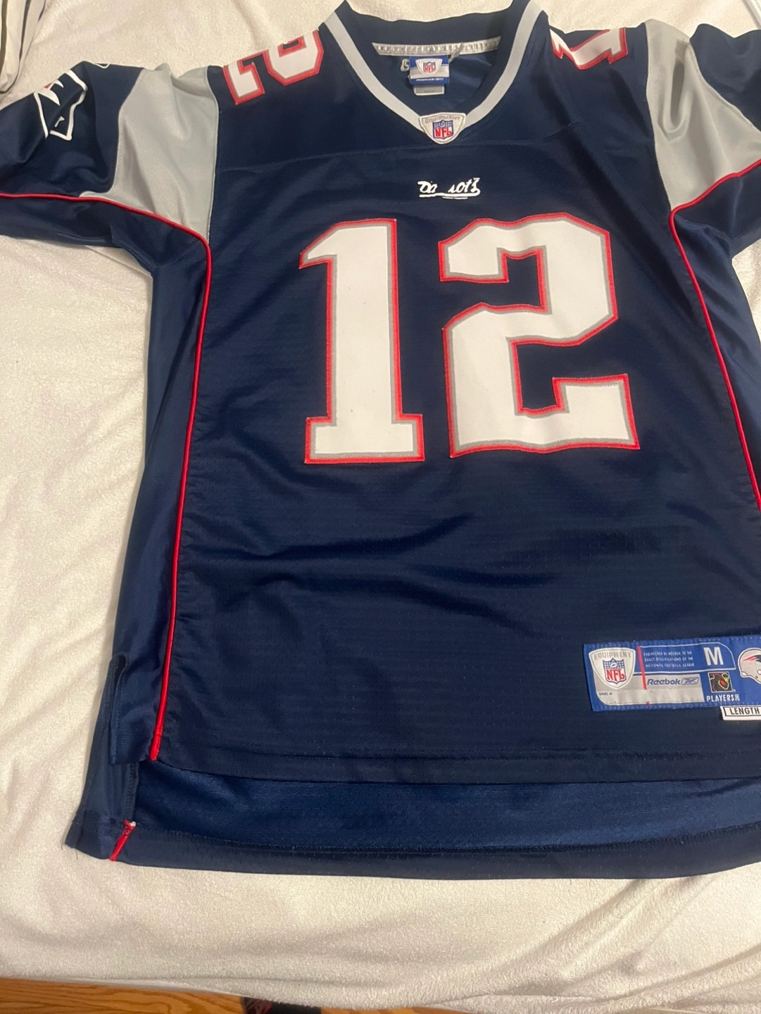 Men's size medium Tom Brady New England Patriots jersey. Reebok brand. Number 12 on the back. Authentic NFL gear.