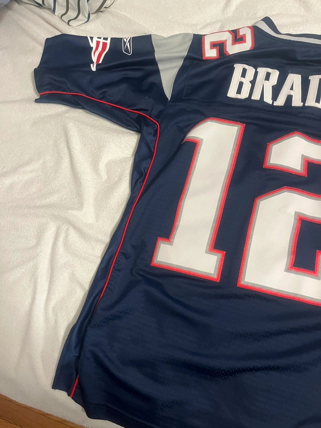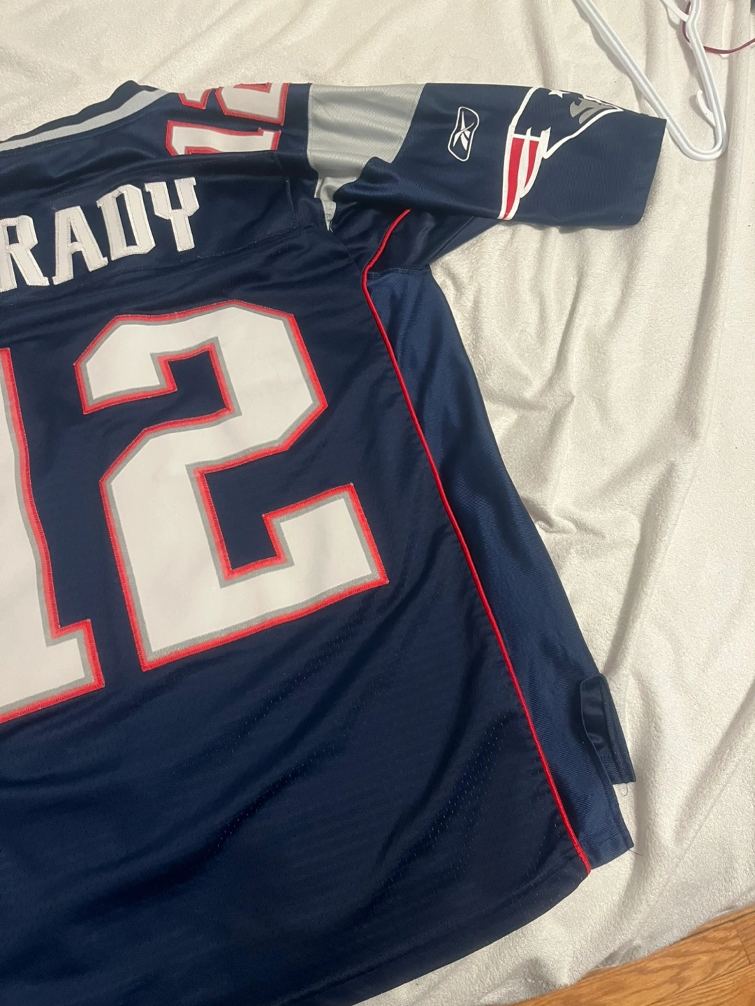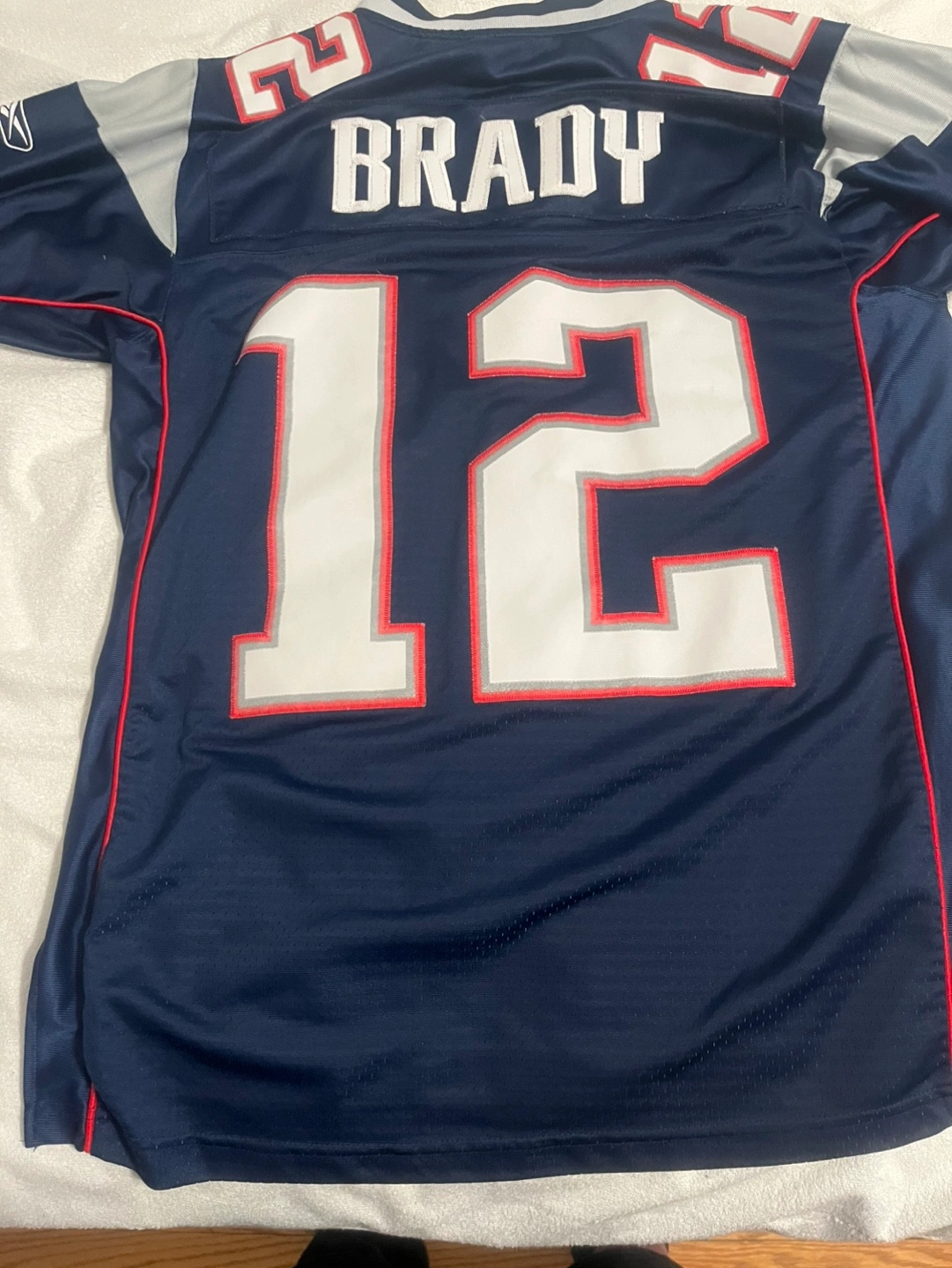 Men's size medium Tom Brady New England Patriots jersey. Reebok brand. Number 12 on the back. Authentic NFL gear.