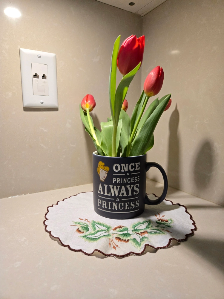 Dark blue mug featuring Cinderella and the text "Once a Princess Always a Princess". Great for coffee, tea, or hot chocolate. Perfect gift for Disney fans.
