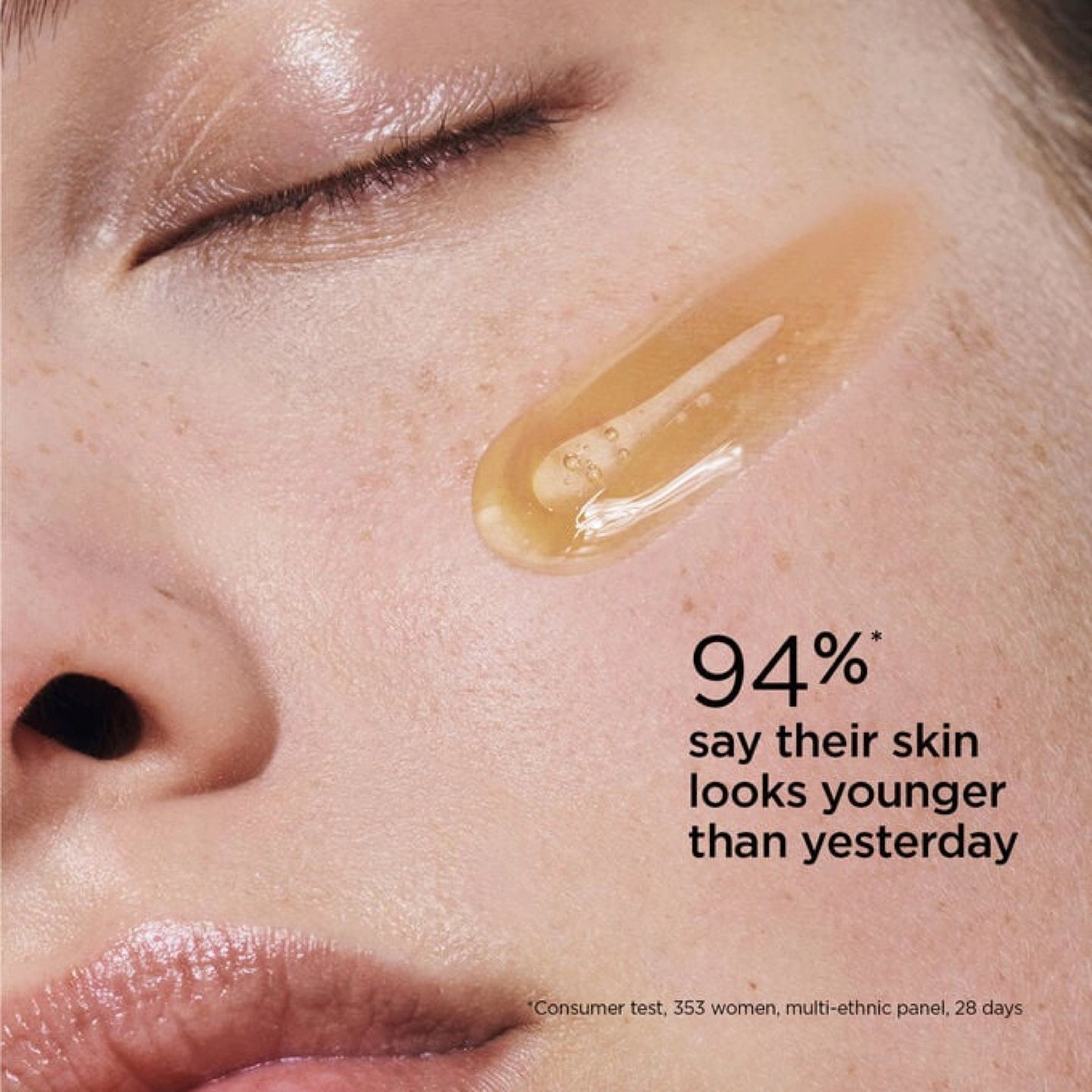 Clarins Double Serum. Hydric + lipidic system. 22 plant extracts and 5 active molecules. Visibly firms, smoothes, boosts radiance, refines pores. 24H hydration. Complete age-defying concentrate.