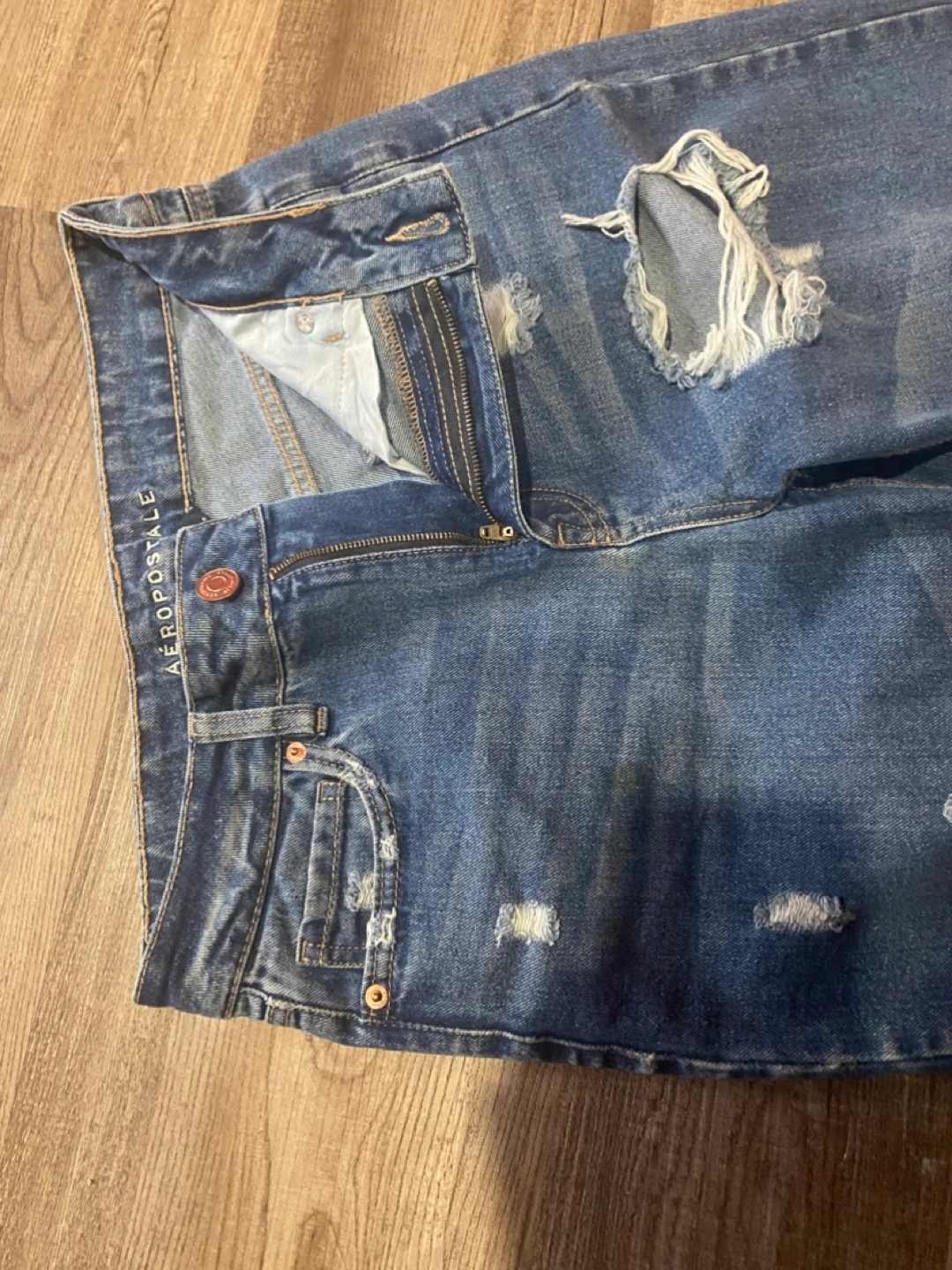 Buy & SellAeropostale Distressed JeansAeropostale Distressed Jeans$5High-waisted, straight leg jeans. Multiple distressed areas. Raw hem. Size 6Size6BrandAeropostaleWHERE TO MEETCheck LocationView MapSELLERElizabethEcho Place293 reviews0 chats·0 favorites·6 views