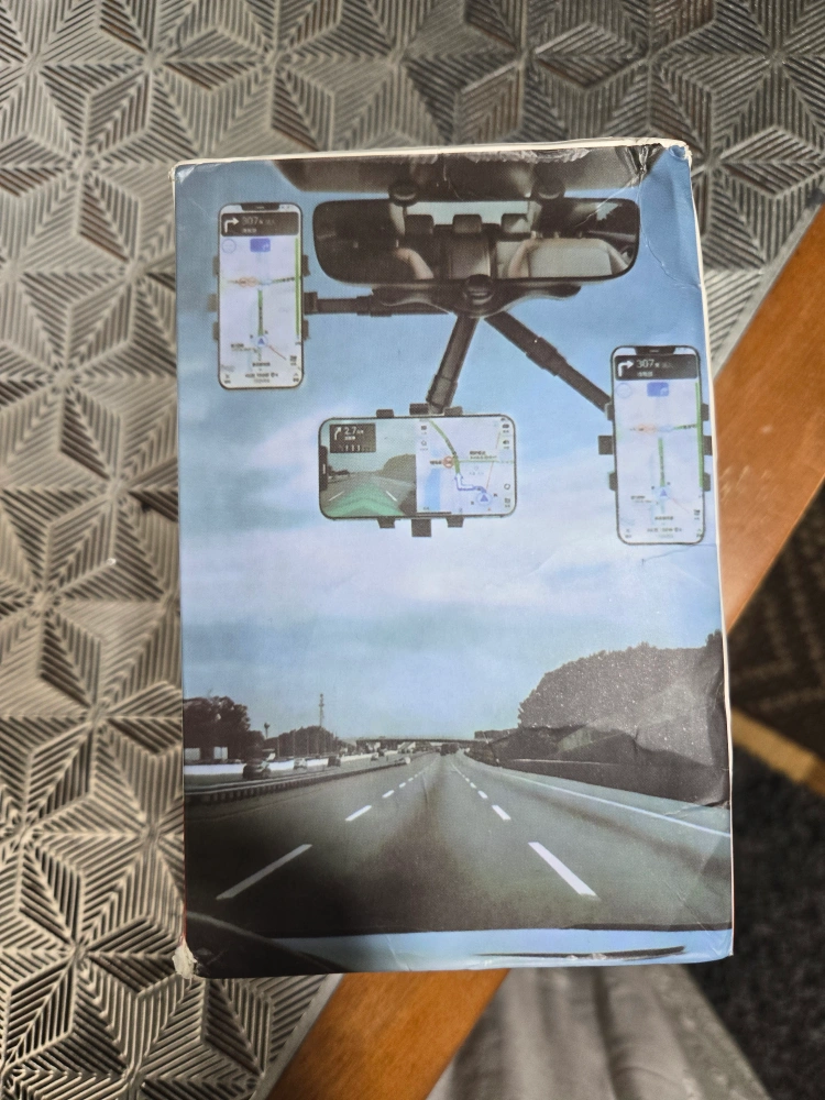 Phone holder for car rearview mirror. 360° free rotation. ABS material. Measures 148*95*85mm. Weighs 200g. Made in China. Easy installation.