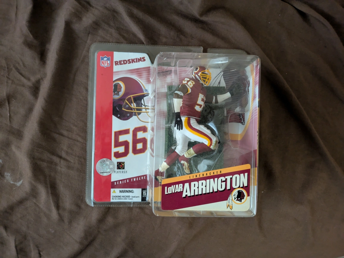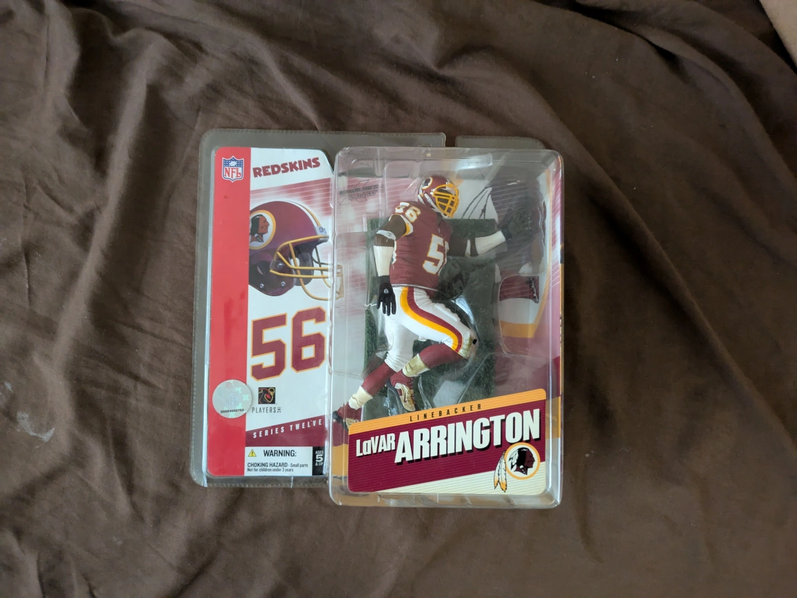 New in package. Washington Redskins linebacker Lavar Arrington. Series twelve collectible figure. Part of the NFL Players Collection.