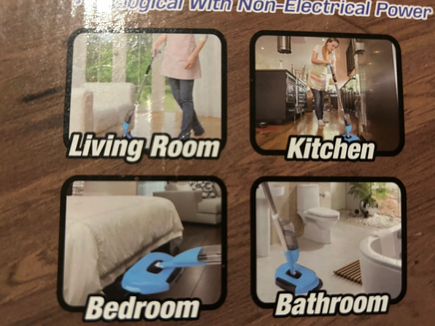 Lightweight cordless sweeper and mop. 360° rotation. Sprayer for enhanced cleaning. Great for various surfaces including living rooms, kitchens, bedrooms, and bathrooms.