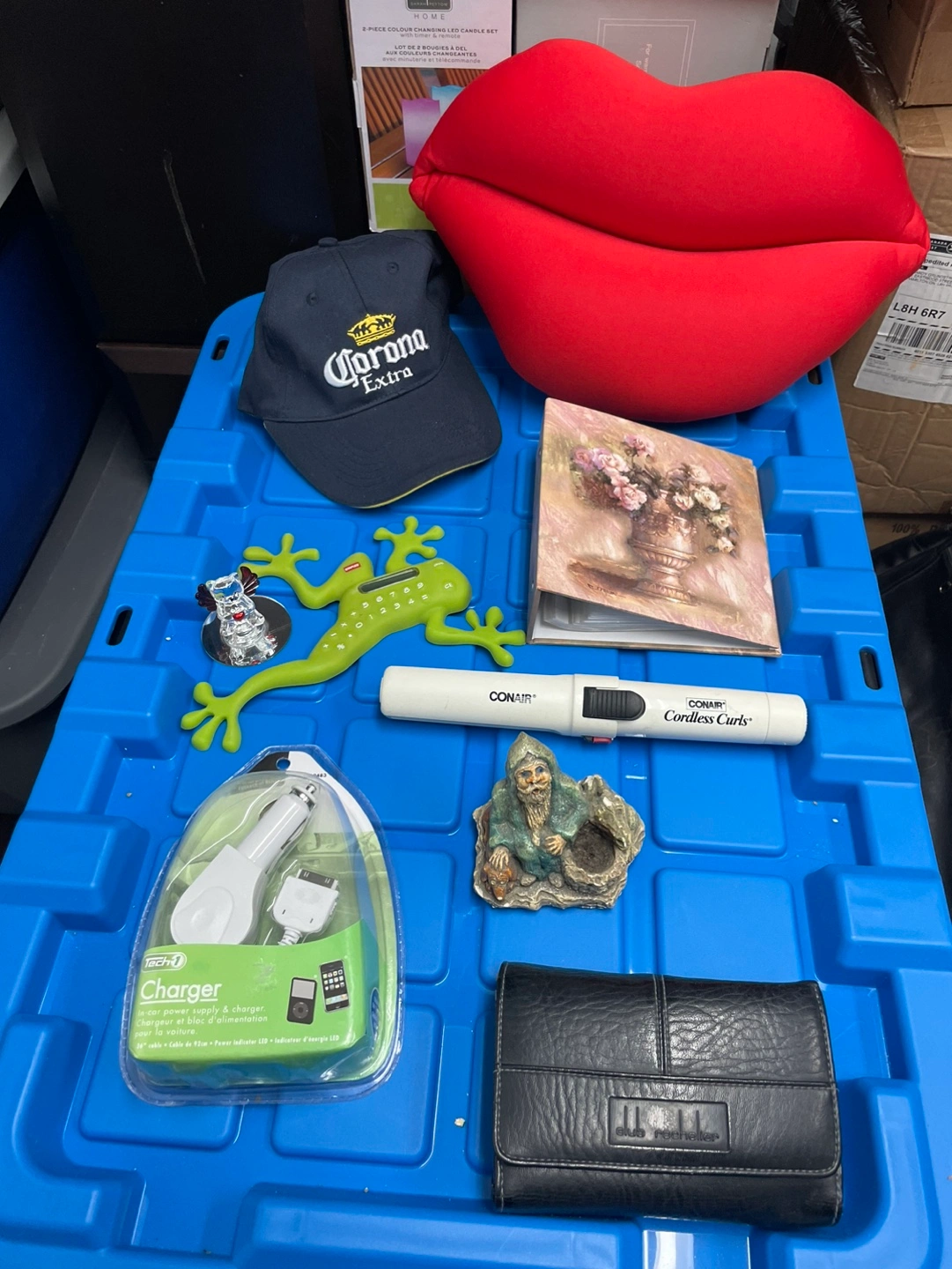 Corona hat, Conair curler, wallet π₯