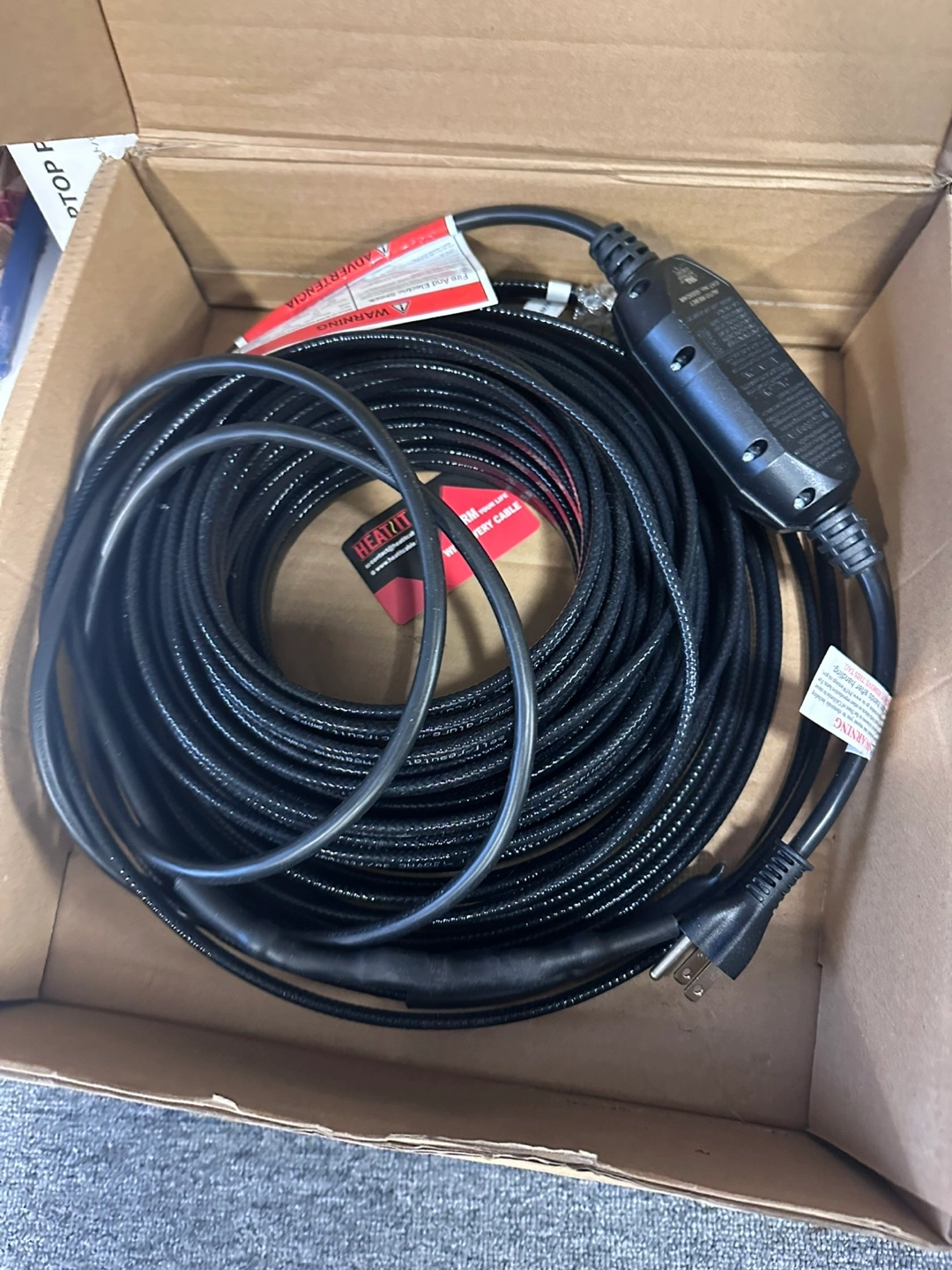 New in box, 3W/FT self-regulating pipe heating system. 110-120 Vac operating voltage. Can endure water pressure up to 60 PSIG. Designed for potable, process, and wastewater applications. Protects water supply pipes in ambient temperatures as low as -4°C (-40°F).