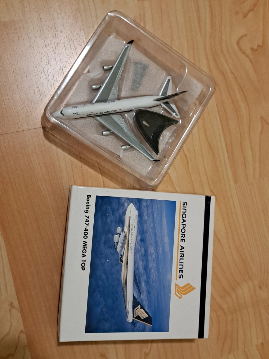 Collectible diecast model airplane. Features Singapore Airlines livery. Boeing 747-400 model. Comes in original packaging.