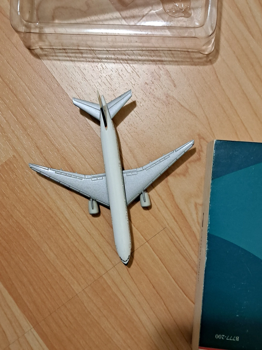 Collectible Cathay Pacific Boeing 777-200 model airplane. Detailed miniature. Great for aviation enthusiasts or collectors.