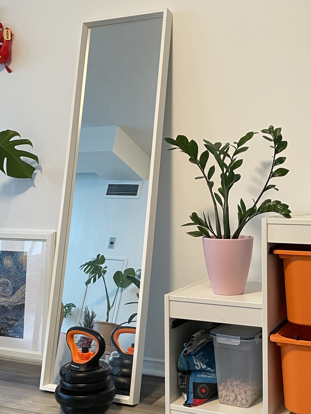 Floor length mirror. White frame. Excellent condition. Perfect for any room. Original price $60+tax. Price is firm, non-negotiable (messages about price won’t be responded).