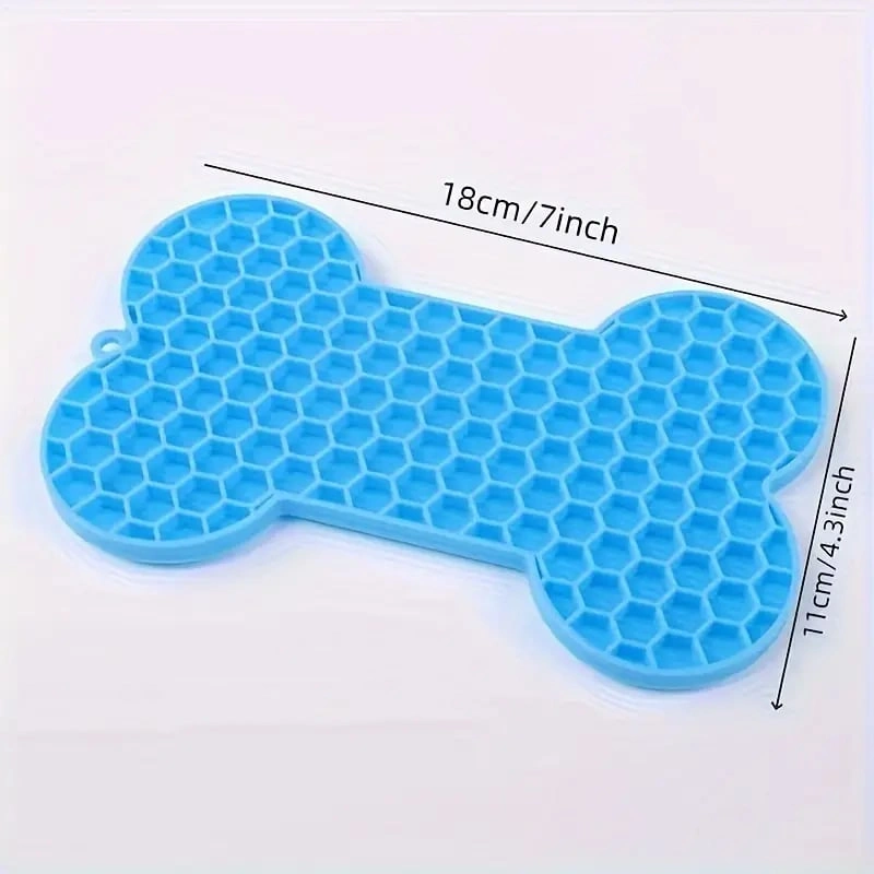 Silicone slow feeder mats for dogs. Fun bone shape and square design. Helps slow down eating. Durable and easy to clean.