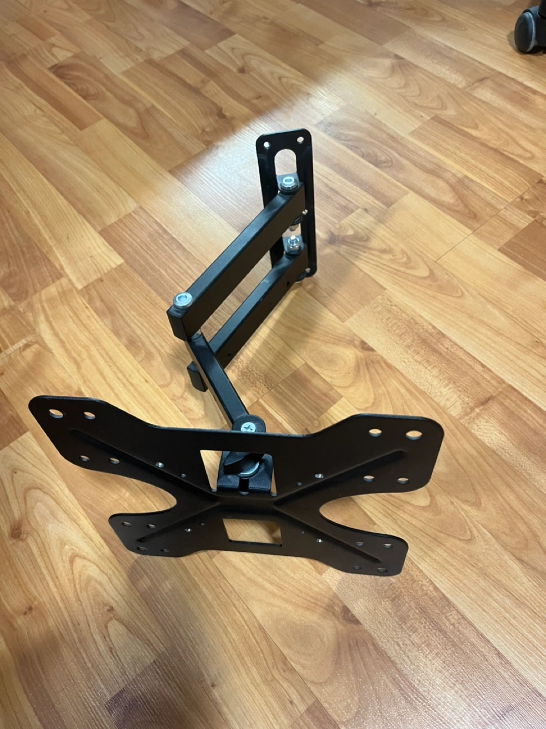 Black metal TV wall mount. Adjustable arm. Suitable for 14-inch to 33-inch screens. Includes mounting hardware. Excellent condition.