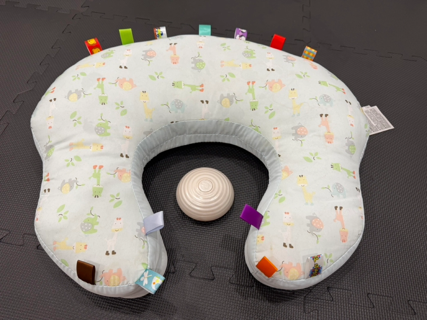 Pre-loved baby feeding pillow. Features a removable vibrating disc.
