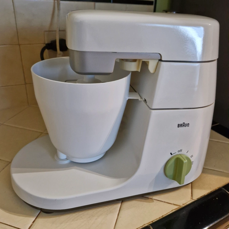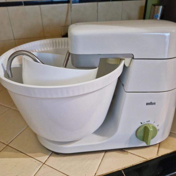 This Vintage Braun stand mixer, it's a true life machine that will last a life time and more. It come with the original bowls, the whiskey and dough hook.