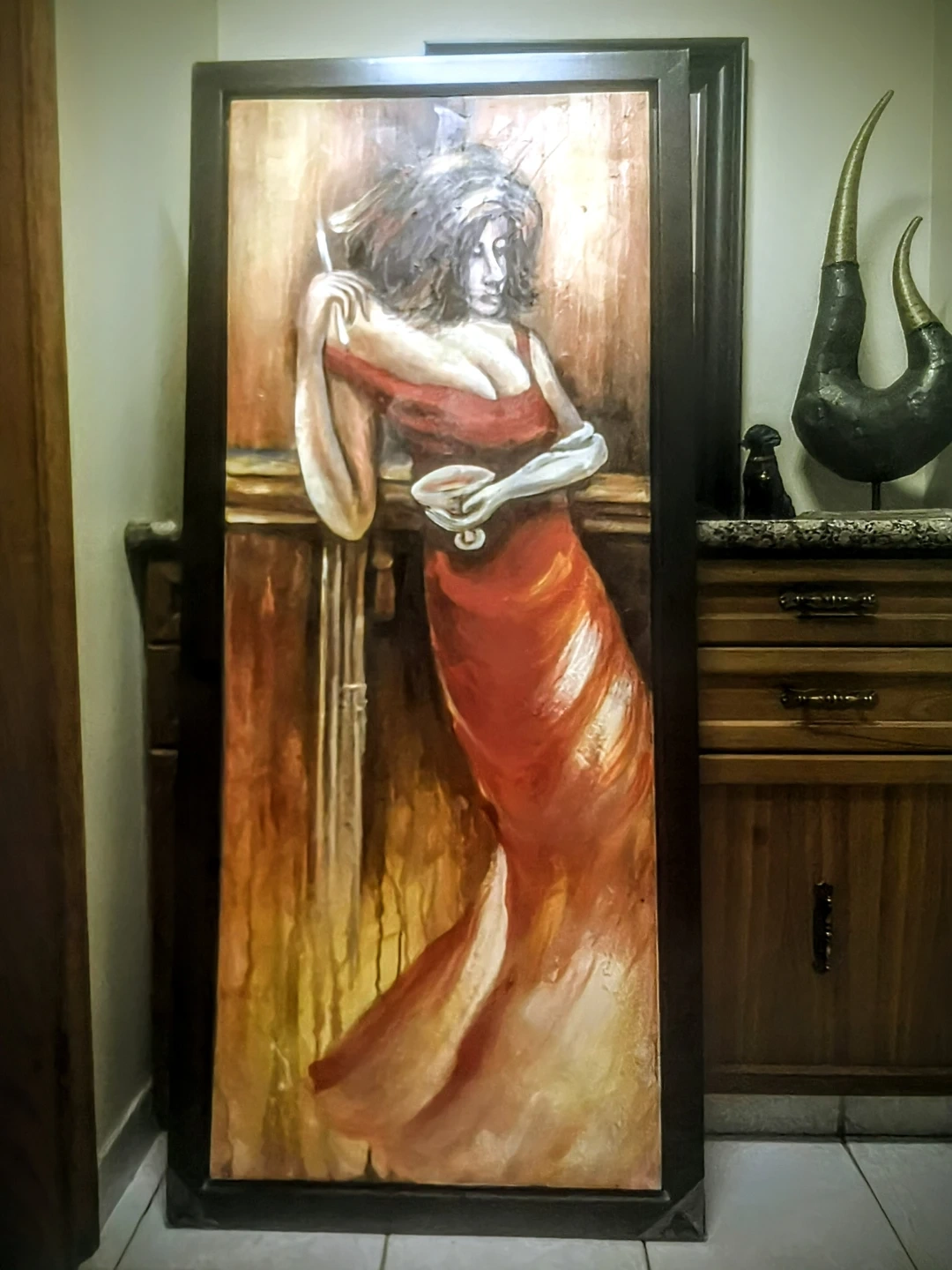 Framed Painting of Woman in Red Dress
