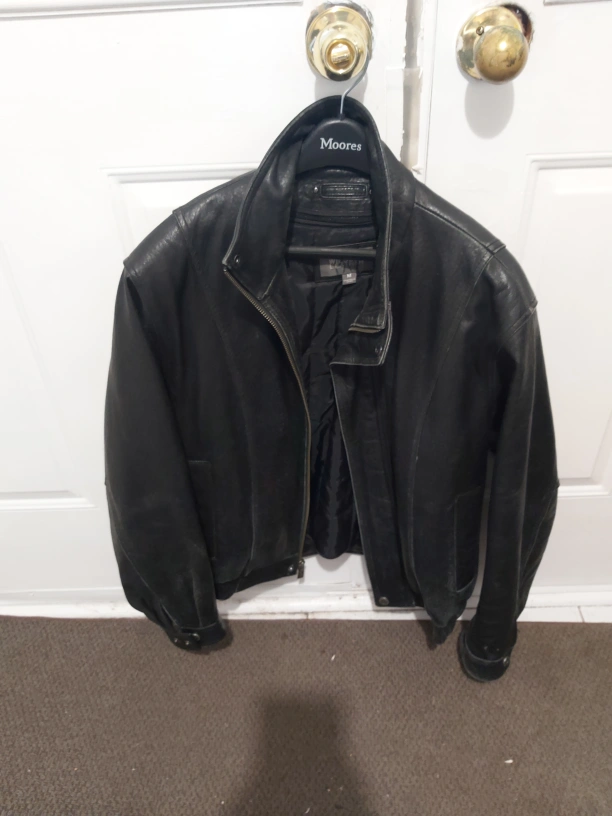 Men's Black Leather Jacket - Size M
