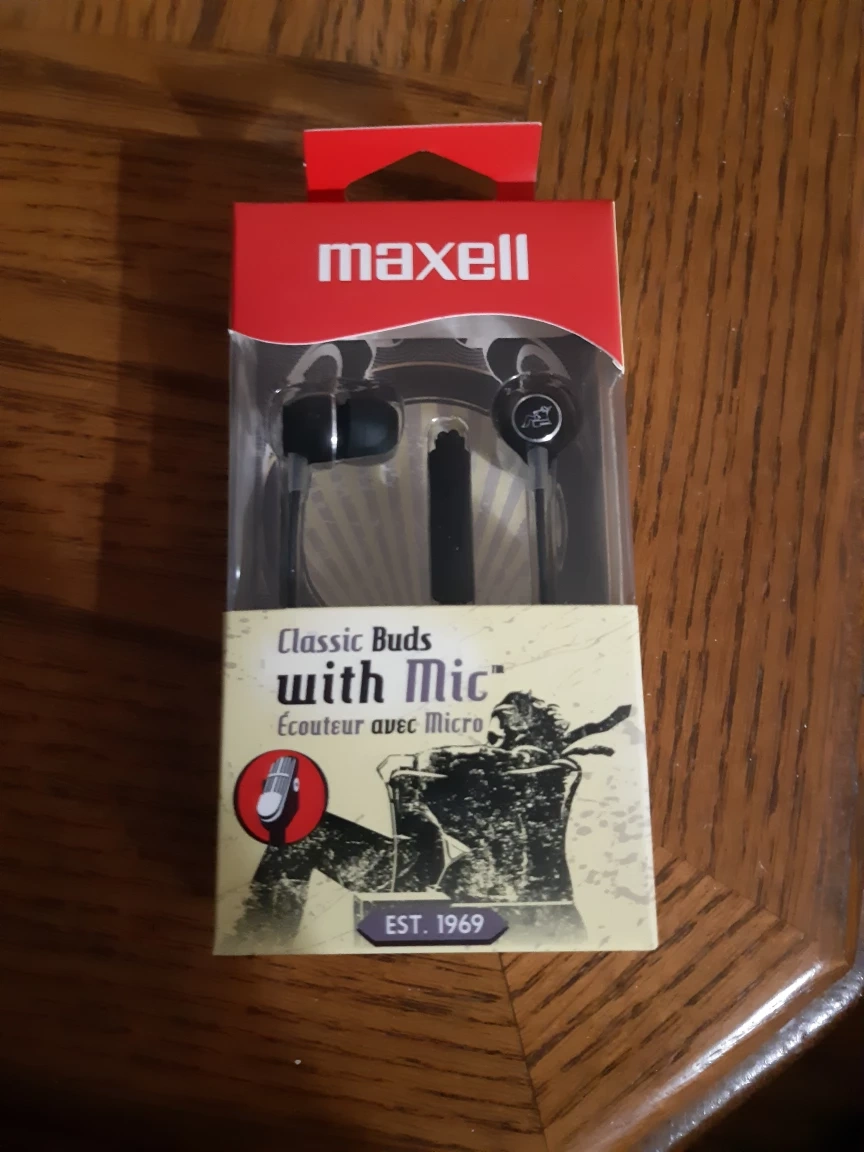Brand new, unopened Maxell Classic Buds with Mic. Lightweight and comfortable design. Works with iPod, iPhone, iPad, and smartphone. Includes microphone.