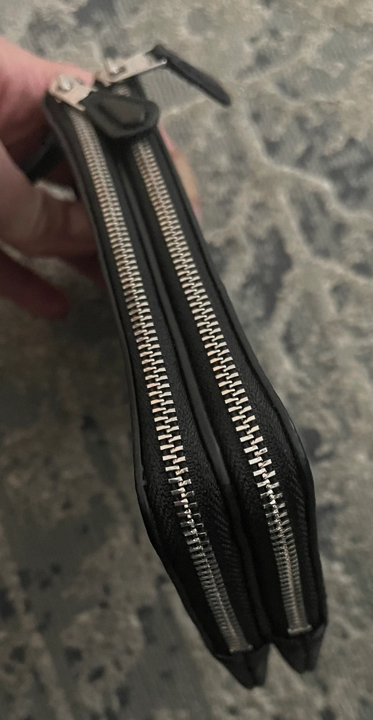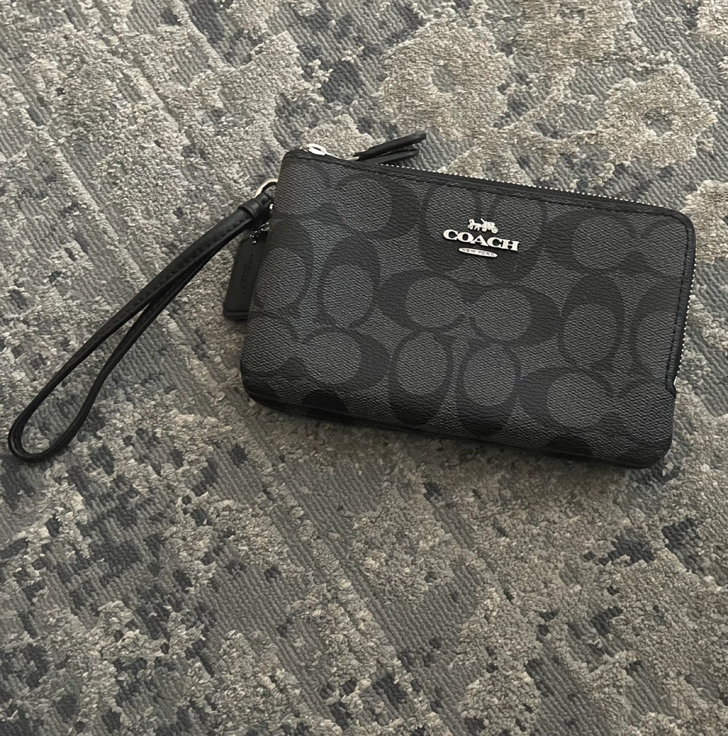 Double zipper double closure. Small wristlet wallet. Black canvas with Coach logo. Perfect for everyday use.