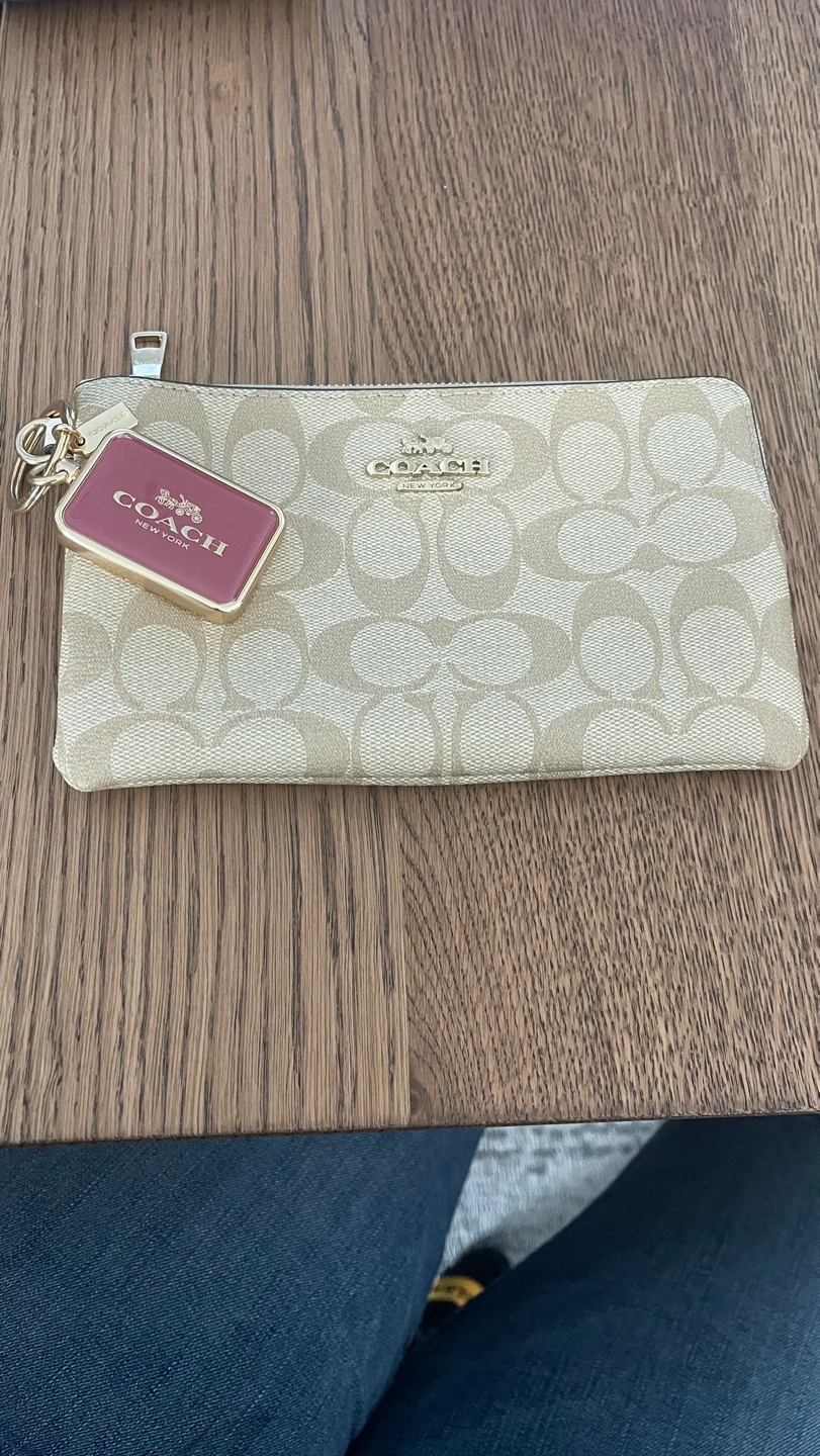 Will sell items separately if requested. Beige Coach wristlet with matching keychain. Zipper closure. Great for everyday use.
