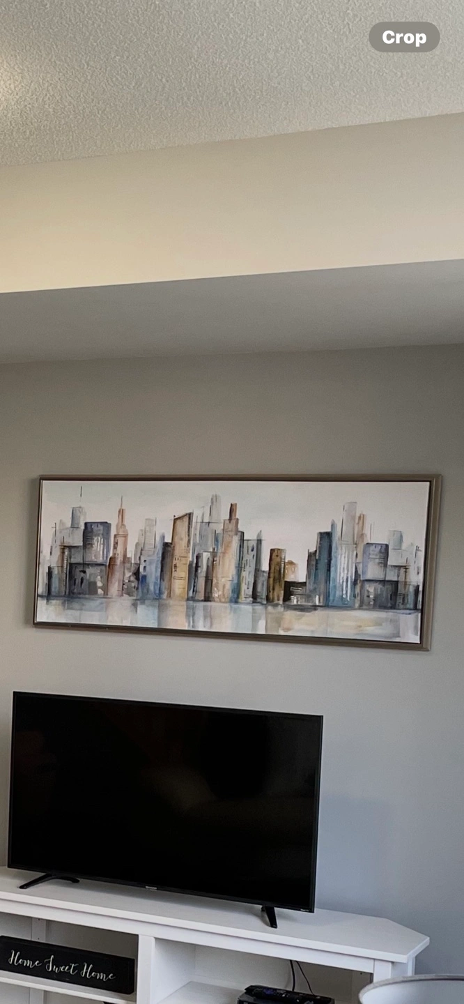 Horizontal framed canvas print. City skyline watercolour design. Neutral colours. Modern style. Great for living room or bedroom.