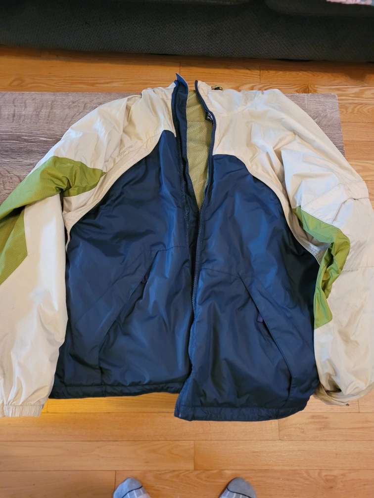 Men's Burton Snowboards Tactic jacket. Size medium. Colour block design. Features a zip closure and pockets. Good condition.