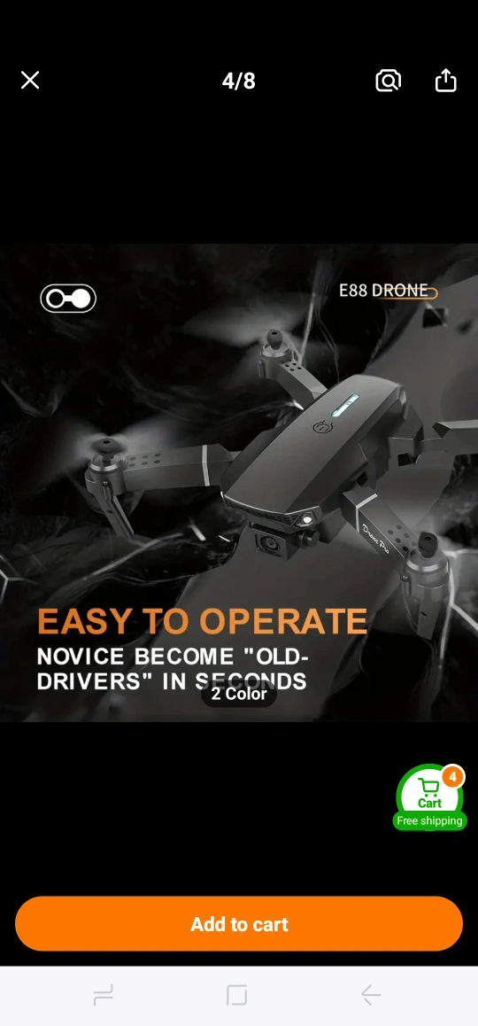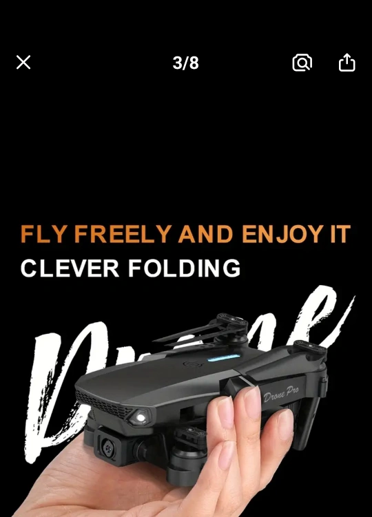 Foldable drone, black colour. Includes controller. Easy to operate. Camera included. Free shipping.