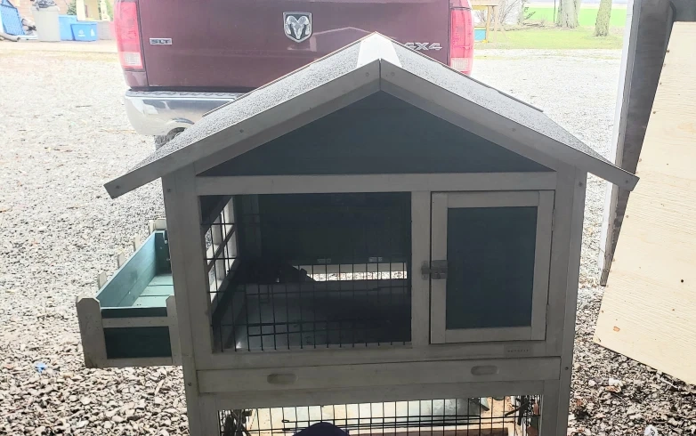 Selling $120 or best offer. Selling as is, Large two-story rabbit hutch. Features a 2 pull-out trays for easy cleaning. Good for indoor or outdoor use. Some wear and tear. PU Essex