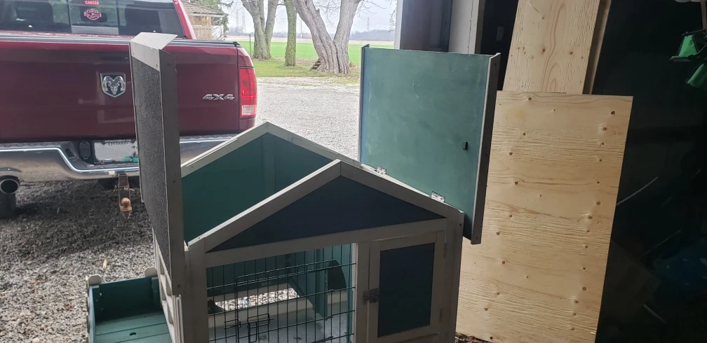 Selling $120 or best offer. Selling as is, Large two-story rabbit hutch. Features a 2 pull-out trays for easy cleaning. Good for indoor or outdoor use. Some wear and tear. PU Essex