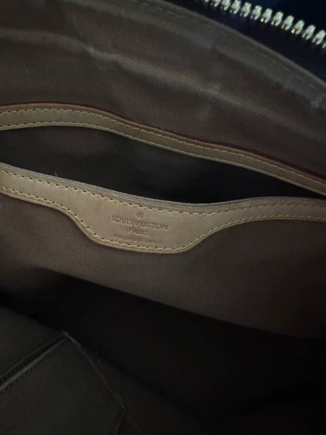 Pre-owned Louis Vuitton handbag. Monogram canvas. Top zip closure. Leather handles and trim. Gold-tone hardware. Great for everyday use.
