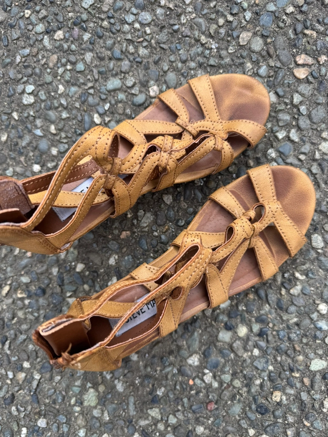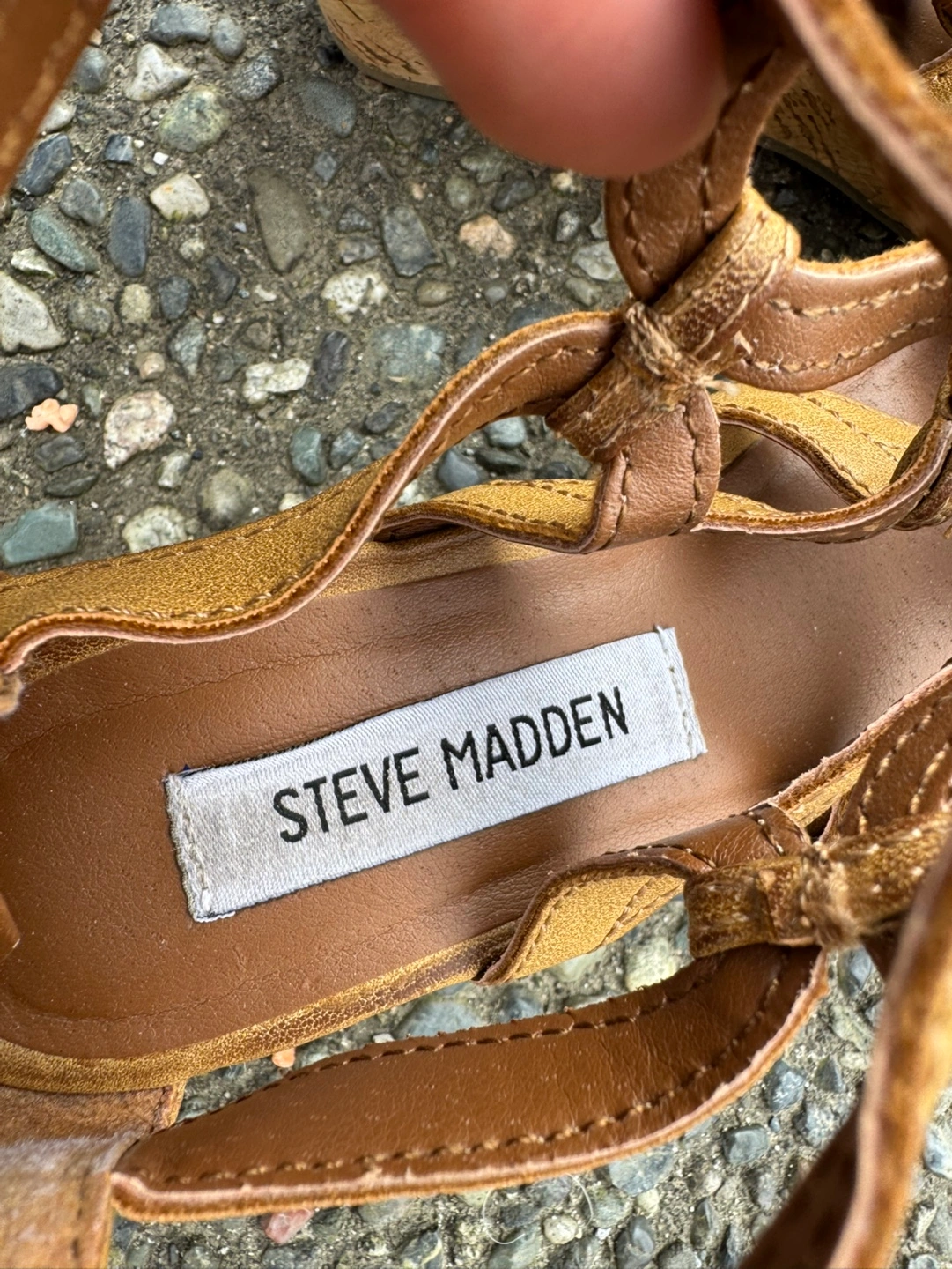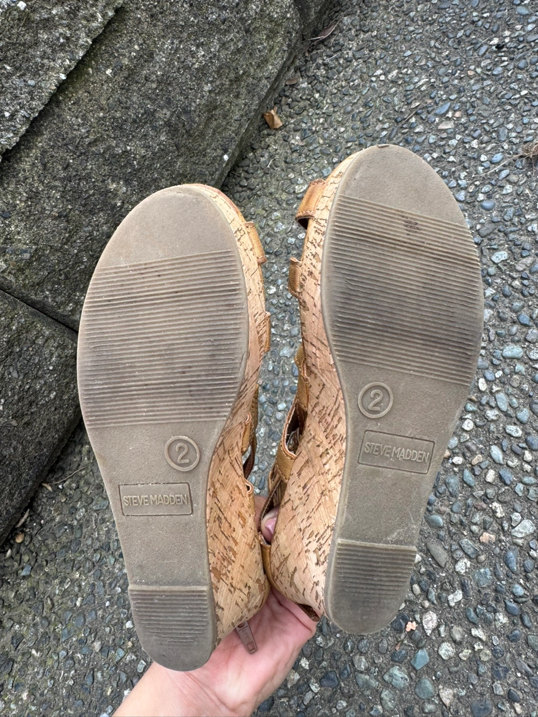 90Women's Steve Madden sandals. Brown leather. Gladiator style. Cork wedges. Size 2. Gently used.