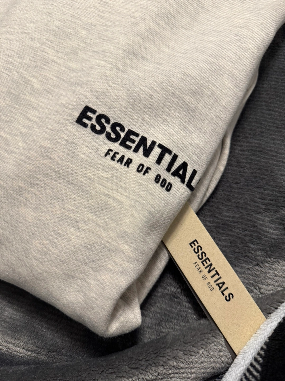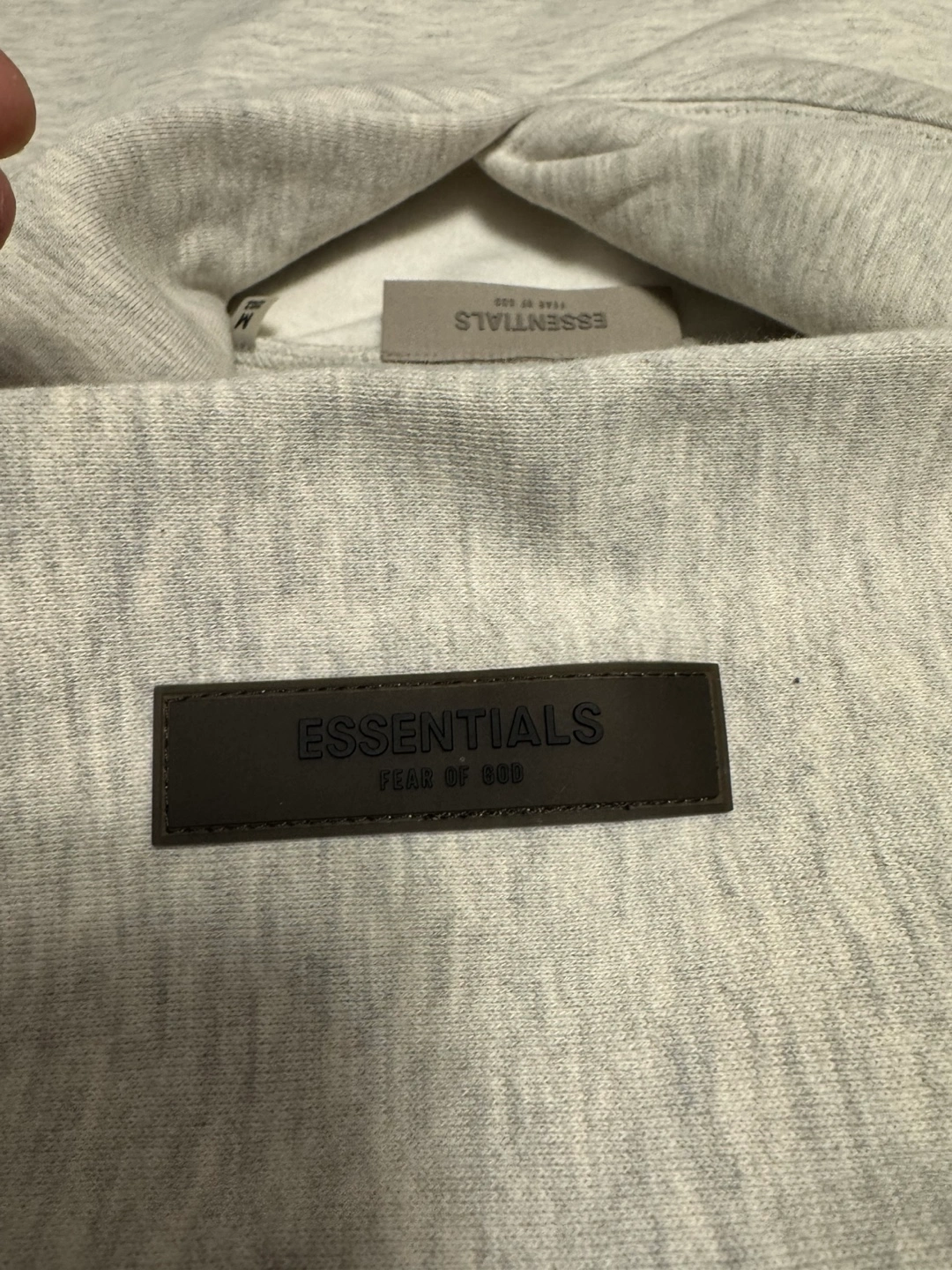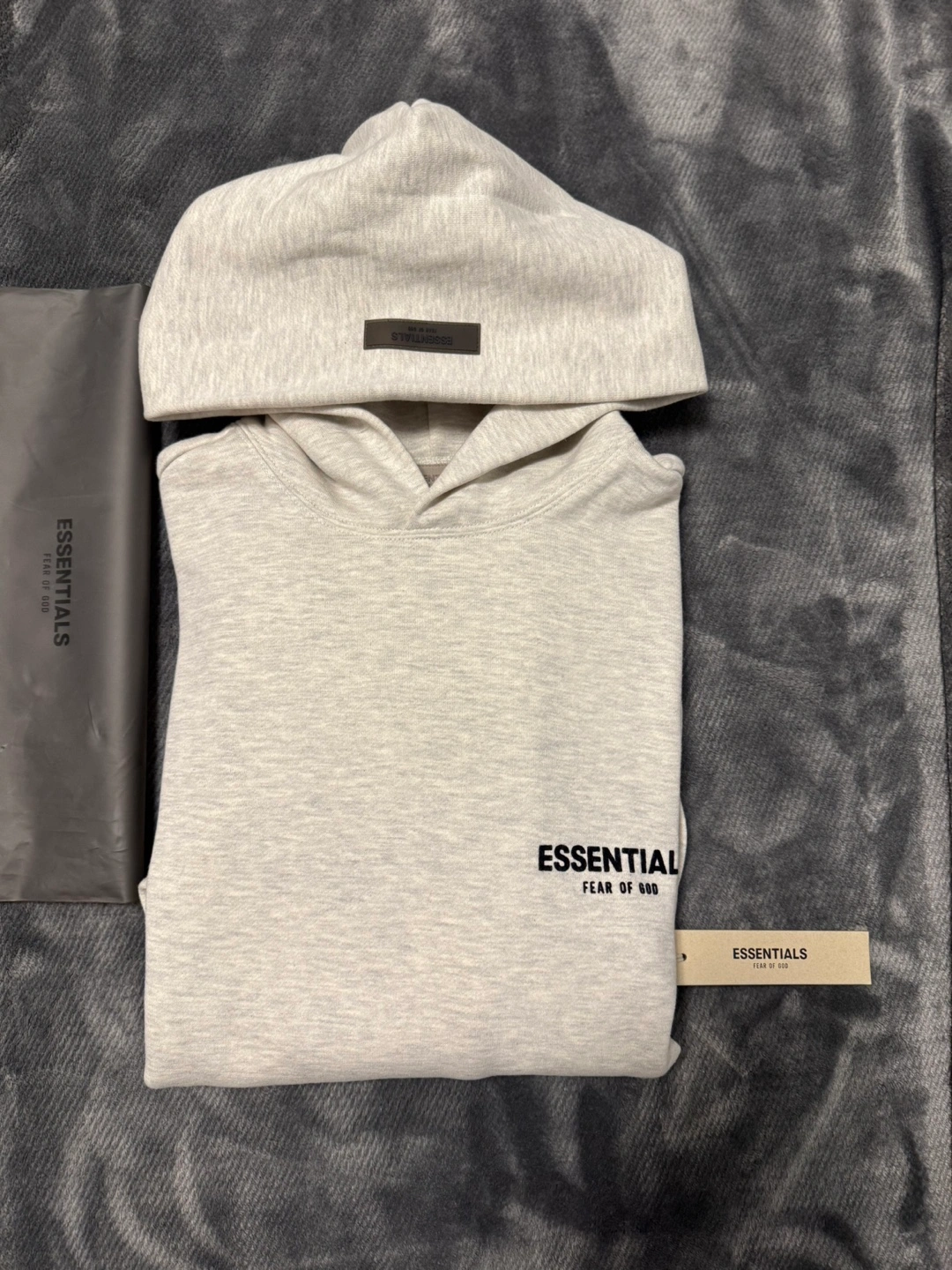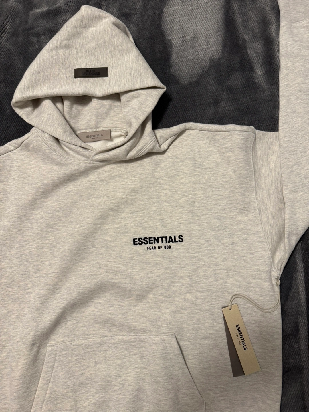 Grey oversized hoodie. Features Fear of God Essentials branding. Excellent condition. new Includes tags.