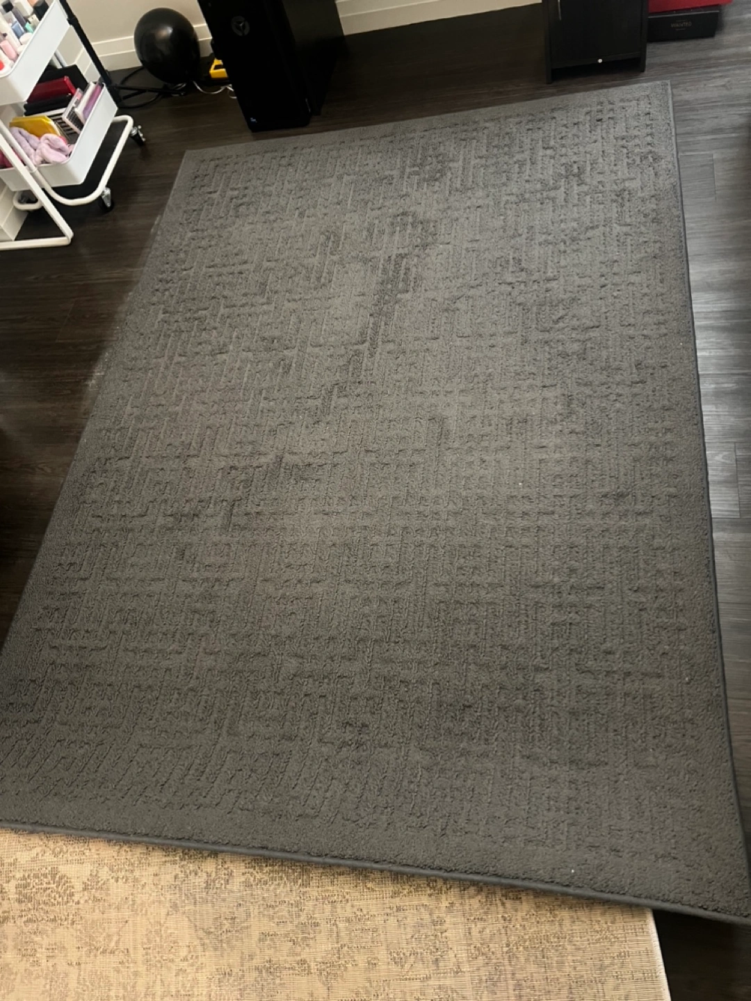 Gently Used. Bentley dark grey rug. Textured pattern. Good condition. Suitable for living room or bedroom. No Smokers / No Pets.