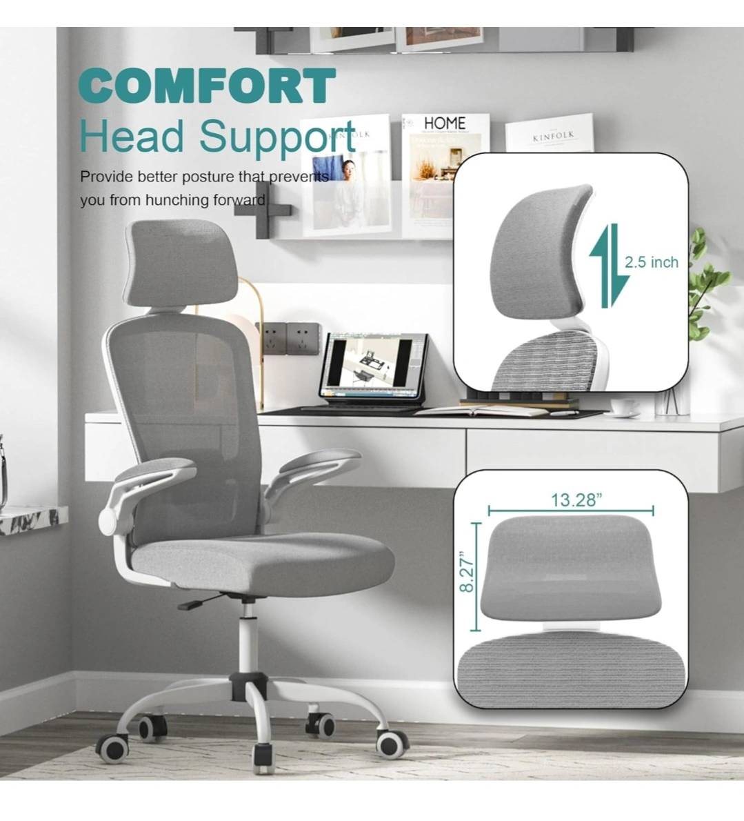 Comfortable and supportive office chair. Features adjustable lumbar support, headrest, and padded seat. Mesh back for breathability. Smooth rolling casters. Durable construction. Great for home or office use.