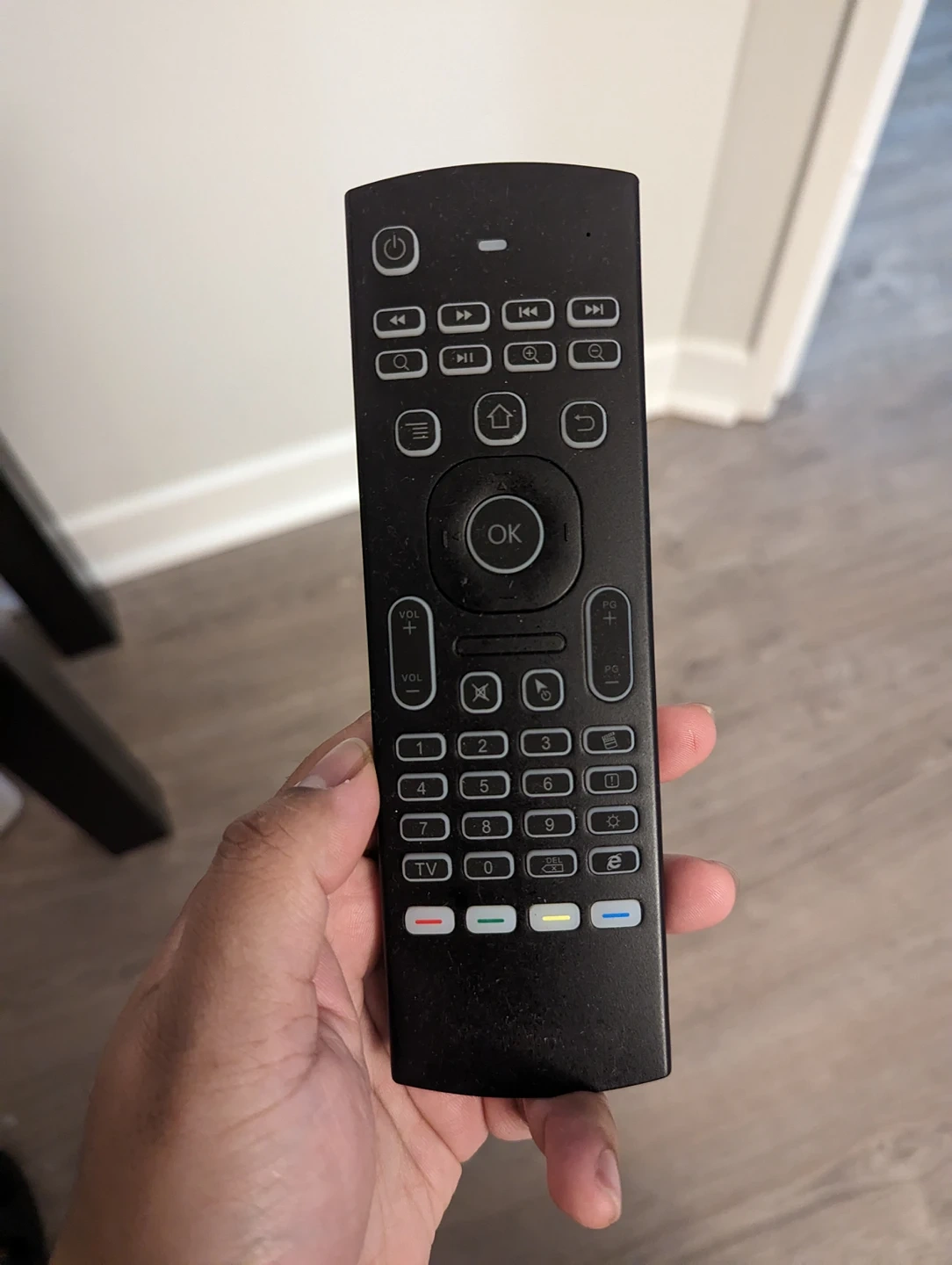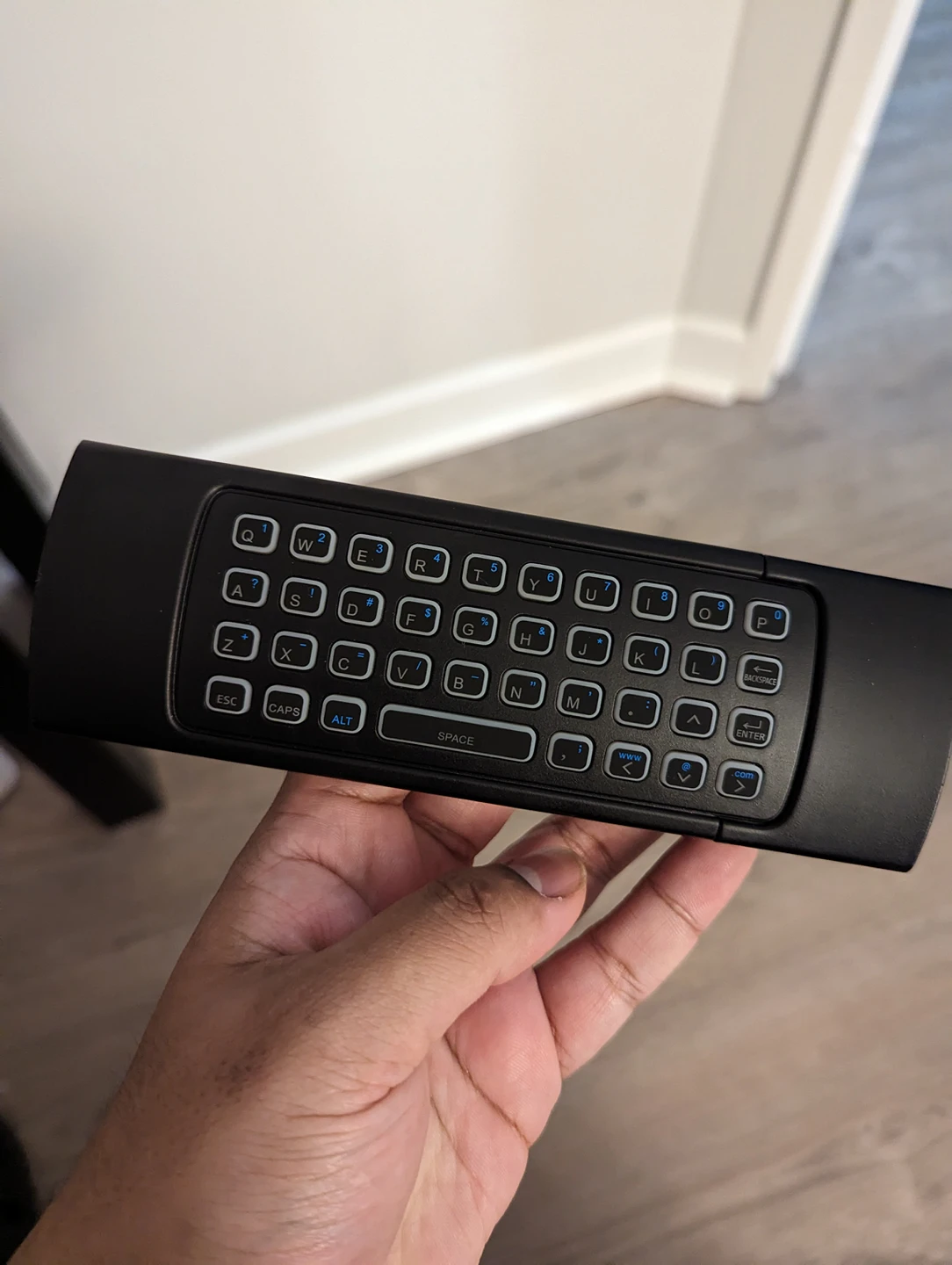 Connects to your PC and moving the remote in the air moves the mouse! Has a keyboard on the back for typing.