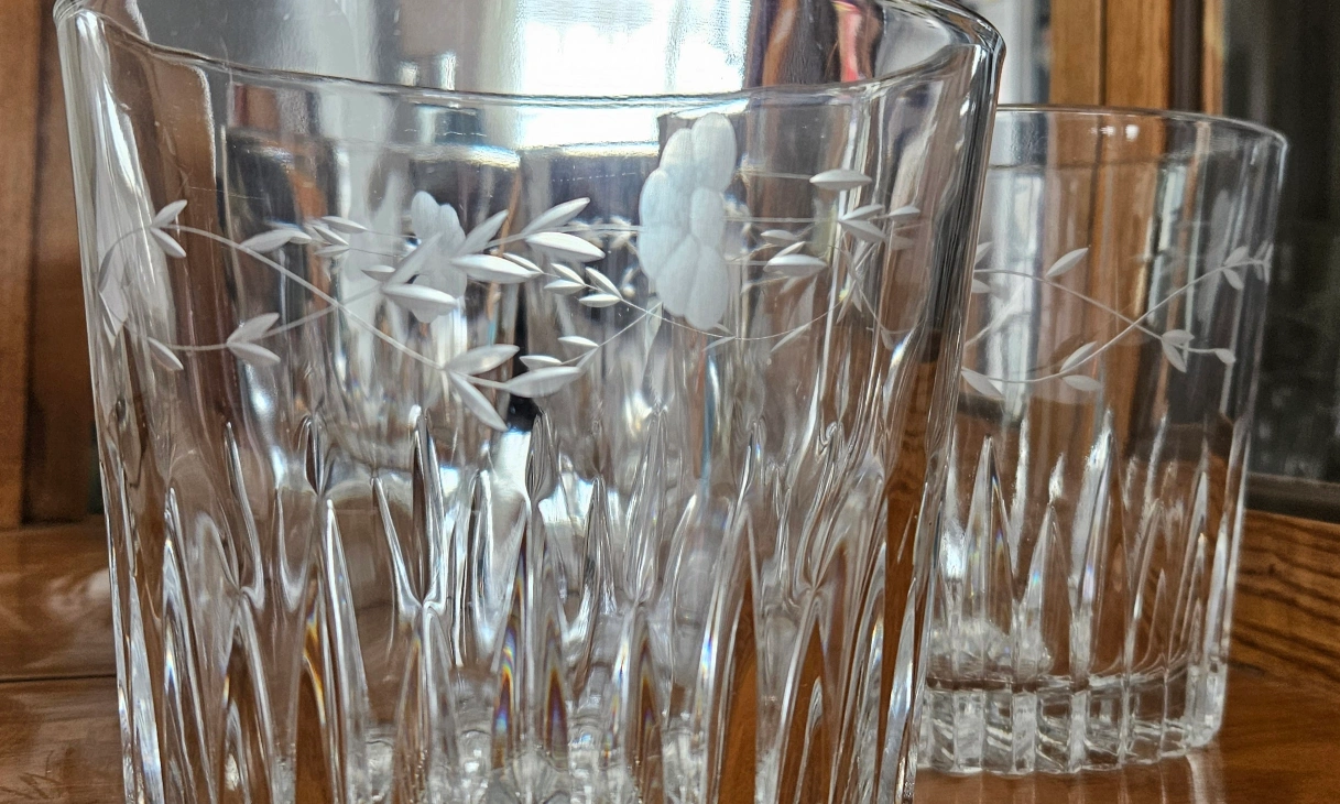 Heritage Pattern of Finely Etched Frosted Flowers and Leafs on Front and Back & Smooth Indented Arches accenting the base.