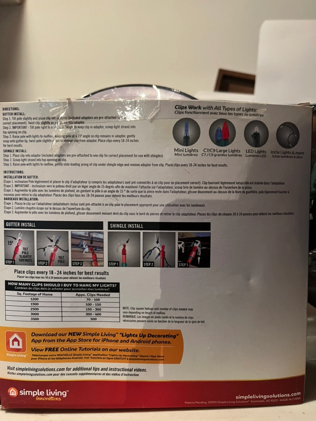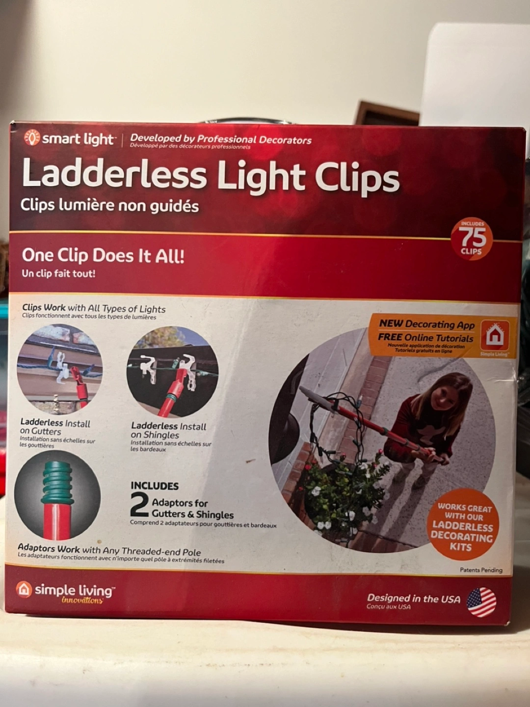 75 ladderless light clips. Includes 2 adapters for gutters and shingles. Works with all types of lights.