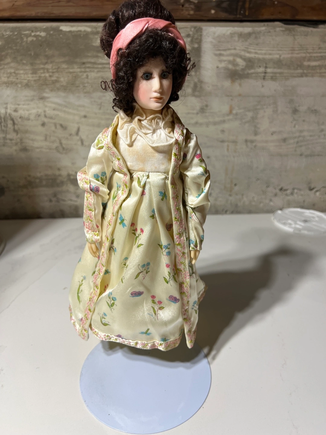 Buy & SellAntique Porcelain Doll in Vintage GownAntique Porcelain Doll in Vintage Gown$35Collectible plastic doll. Beautiful floral dress. Brown hair, pink headband. Doll stands on a small display base.WHERE TO MEETHampton BaysView MapSELLERPatriciaHampton Bays181 review0 chats·0 favorites·8 views