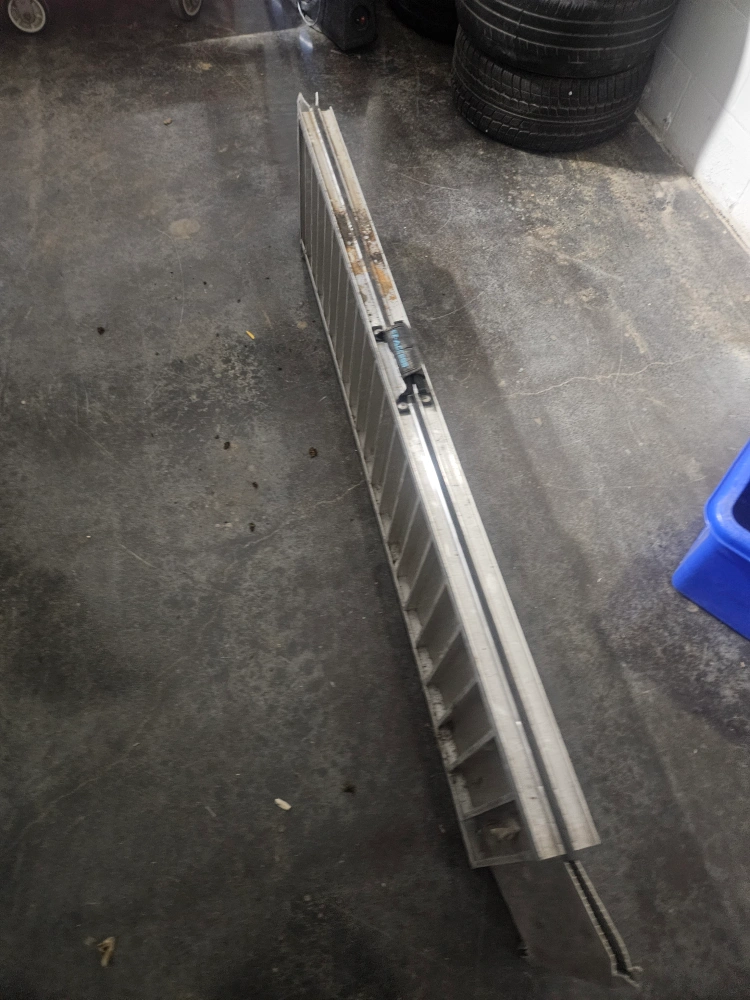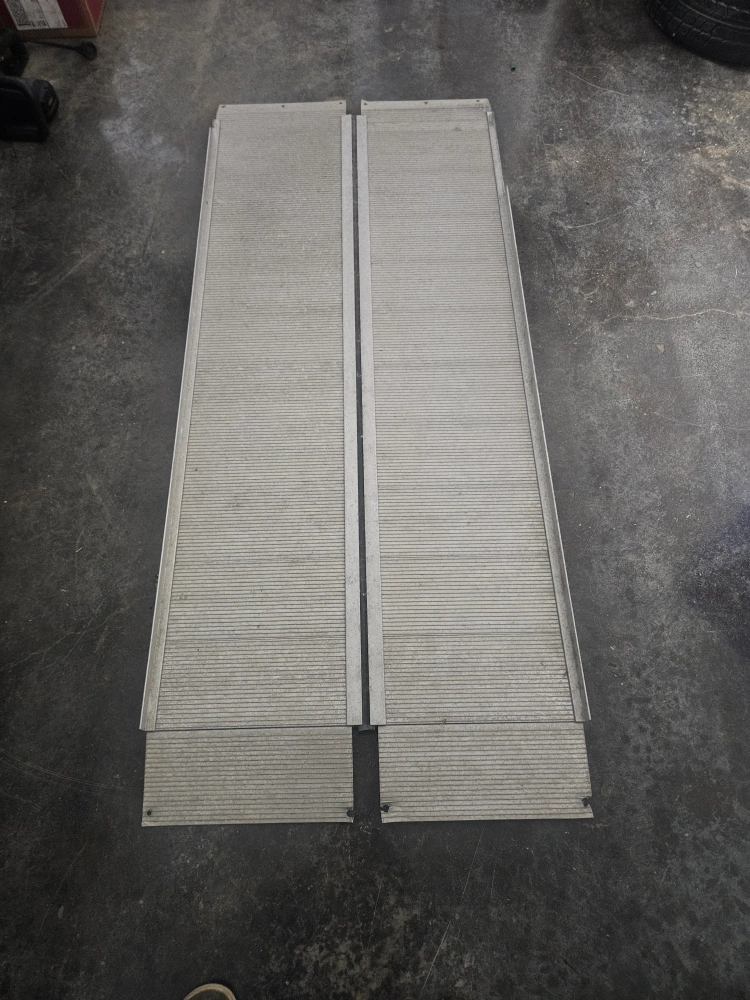 Pair of aluminum loading ramps. Foldable design. Great for motorcycles, ATVs, or other equipment. 63 inches long not including lip and 30 inches wide unfolded.
