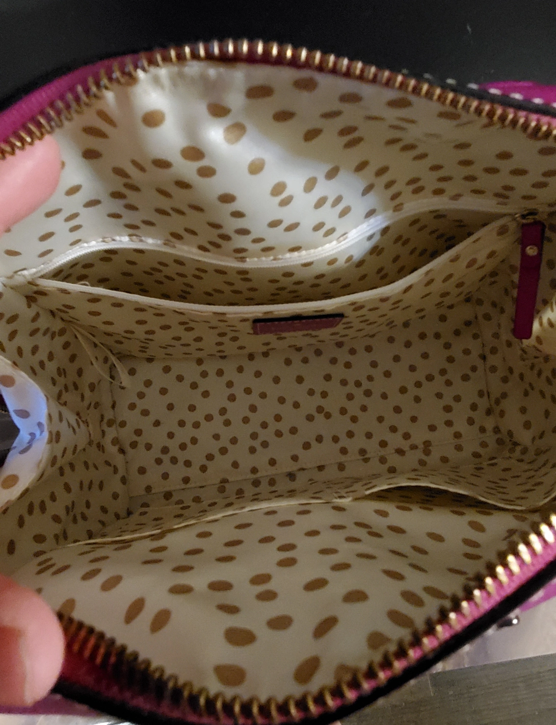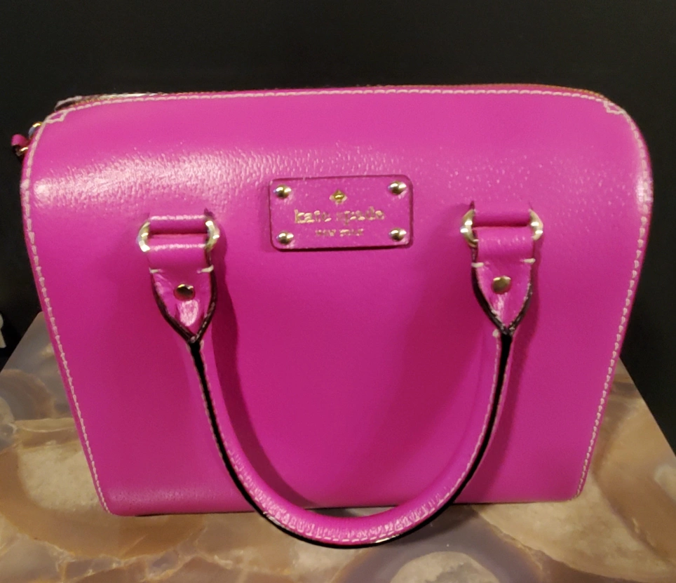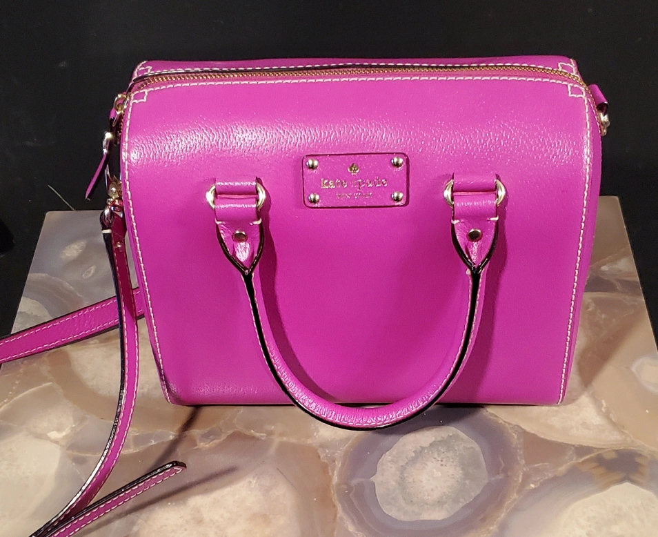 Like new. Genuine Kate Spade bag. Color magenta. Medium size bag. Features two top handles and a detachable shoulder strap. Zipper closure. Interior pockets. Gold-tone hardware.