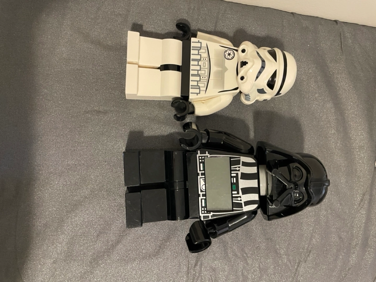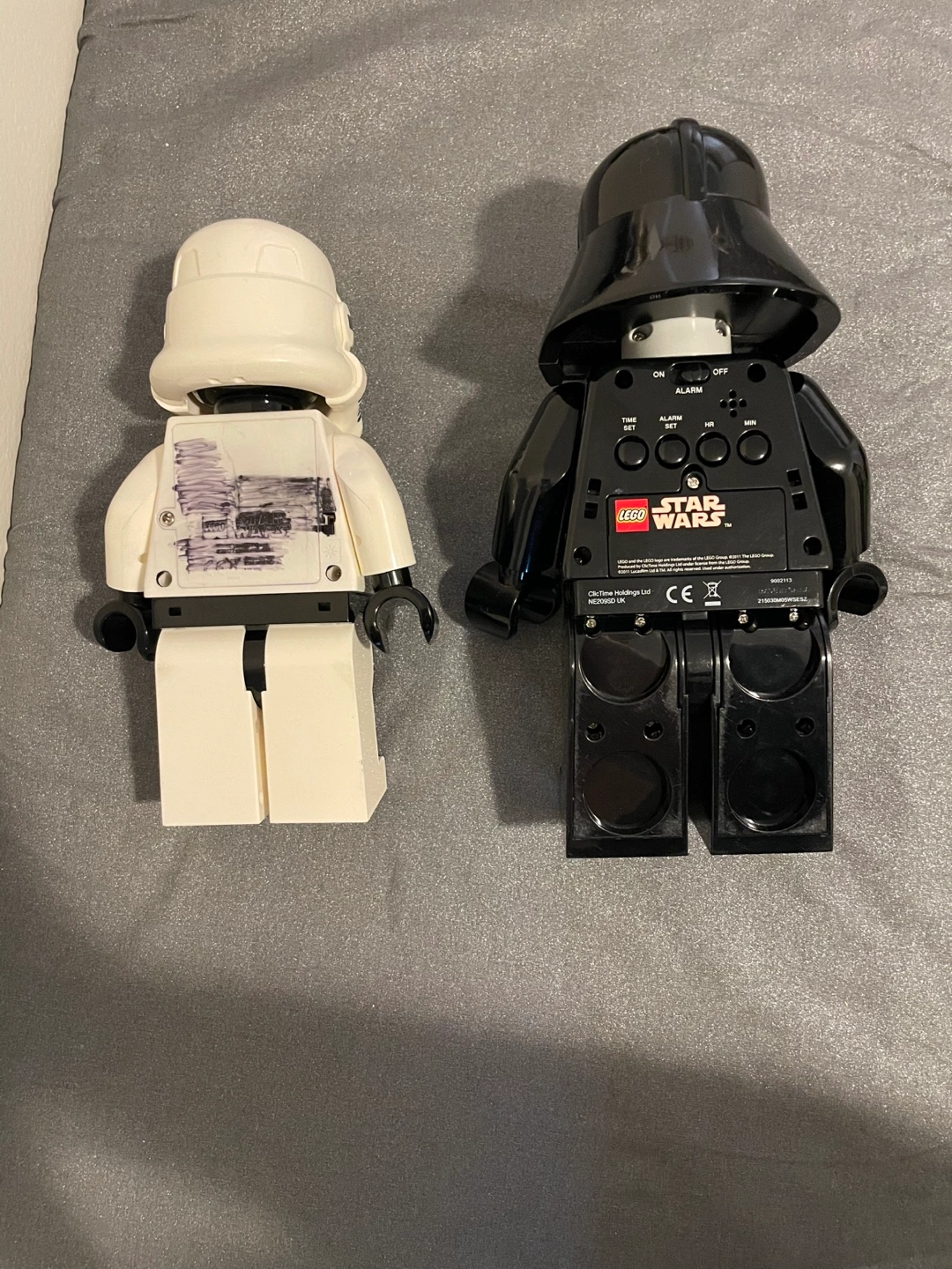 Pair of LEGO Star Wars character toys. Stormtrooper is a flashlight, Darth Vader is an alarm clock w/ digital display. Used condition but still work well, just need new batteries. Negotiable.