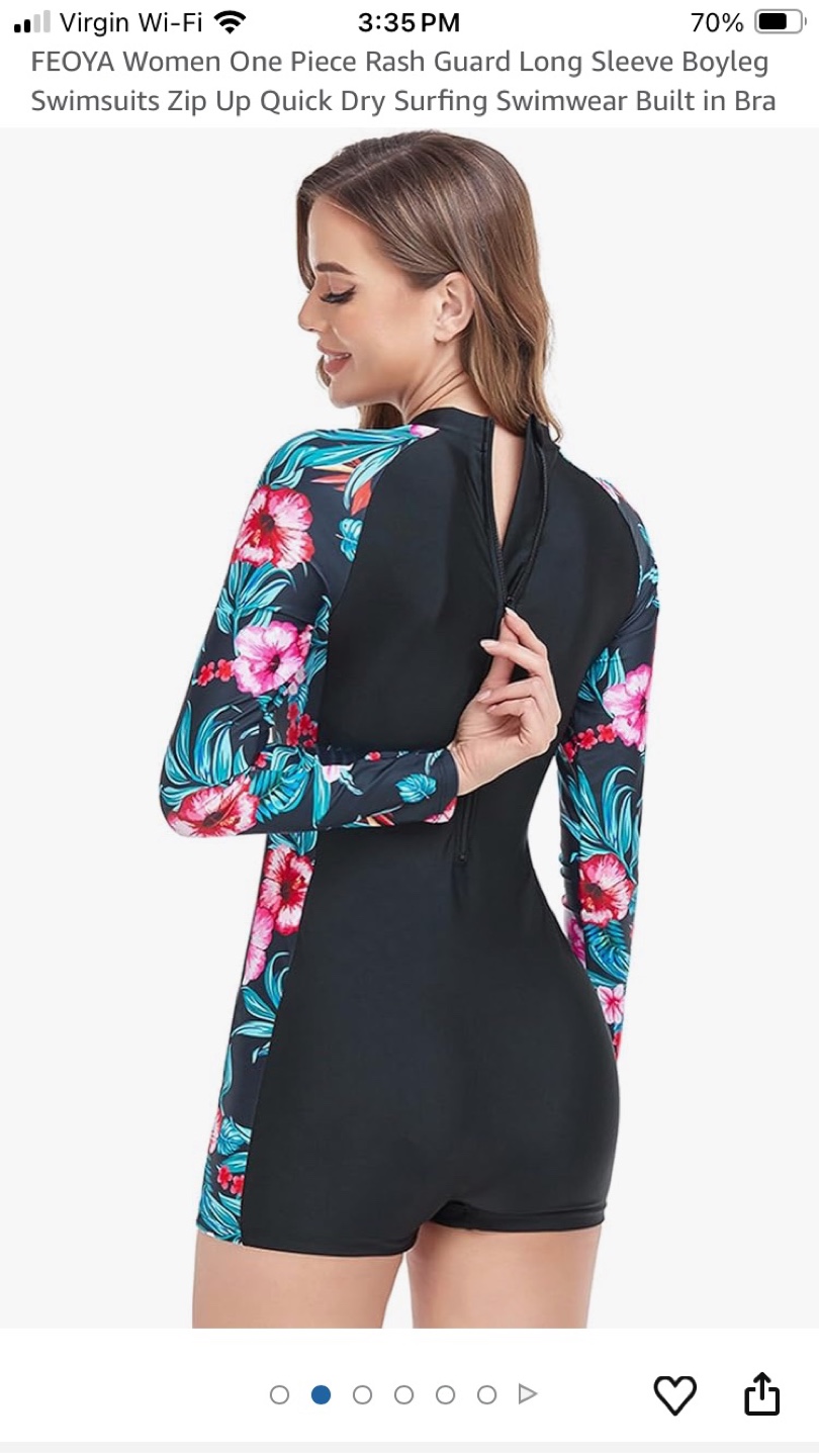 New cool Long sleeve, zip-up swimsuit. Quick-dry material. Built-in bra. Floral print. Boyleg style.