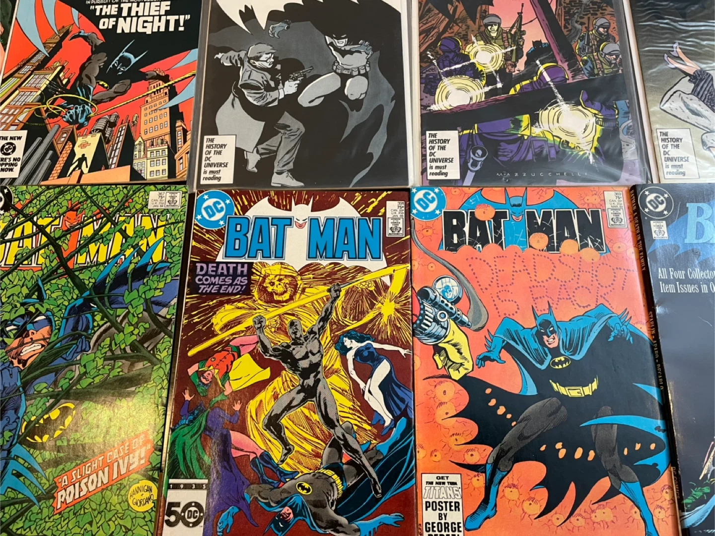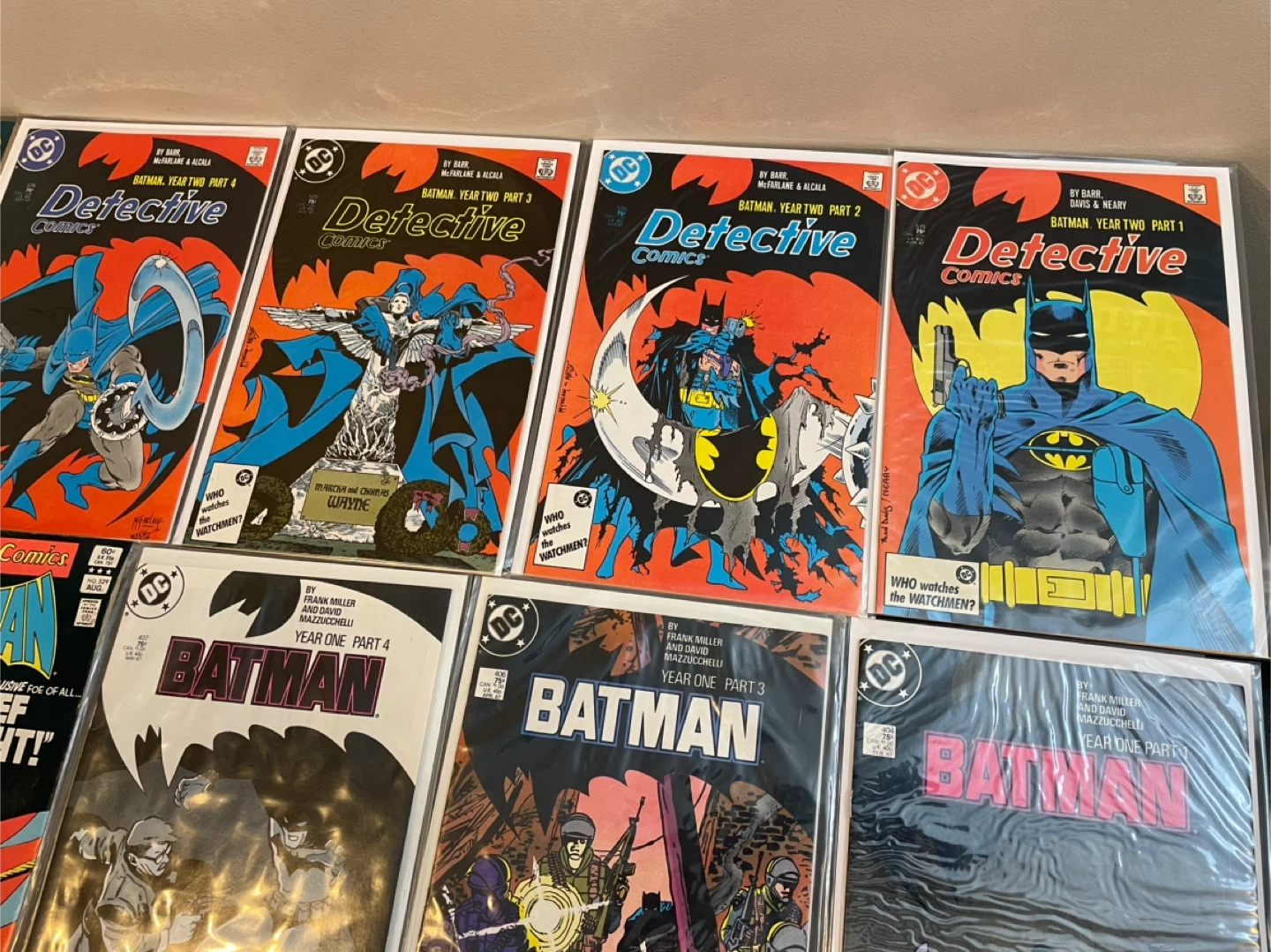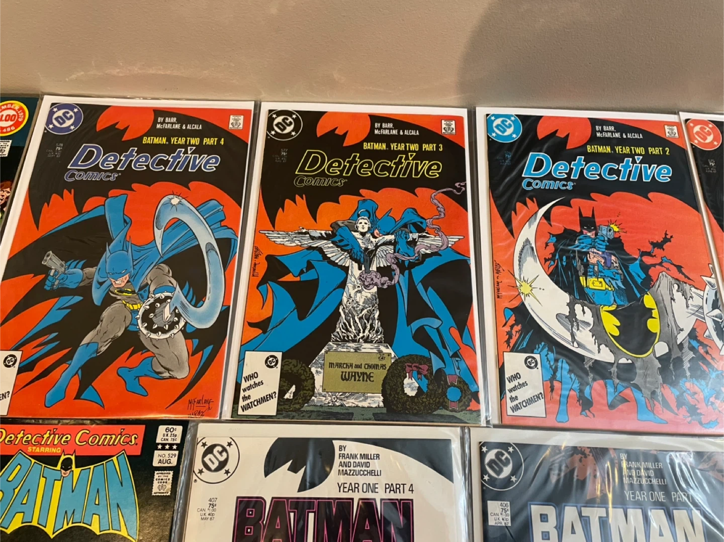 Here's a collection of Detective Comics and Batman comic books. These comics feature iconic storylines like Batman: Year Two and Batman: Year One. They're a great addition for any comic book enthusiast's collection! 1$