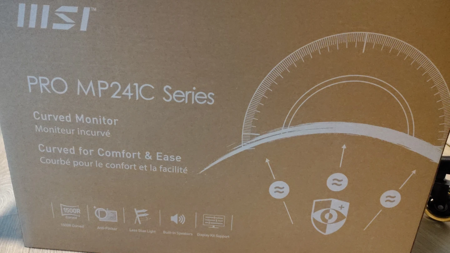 MSI PRO MP241C Series curved monitor. It features a 1500R curved screen for comfort and reduced blue light.