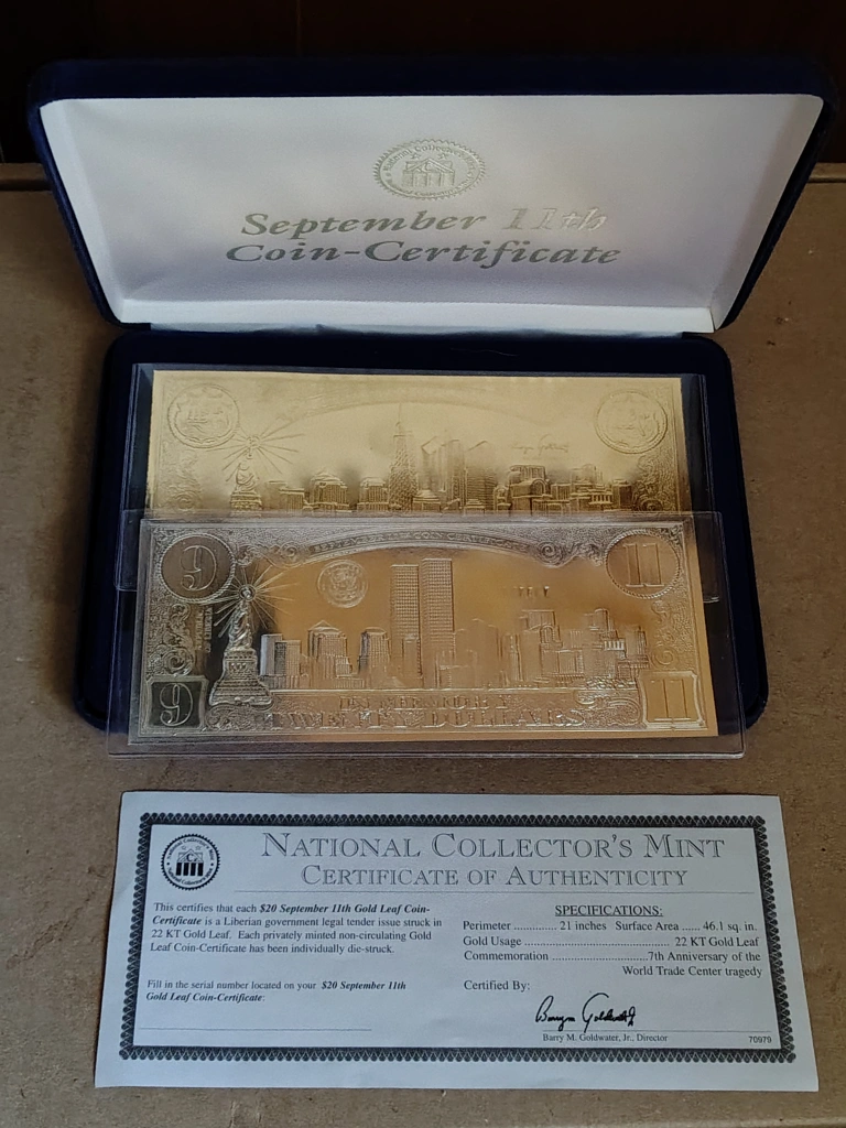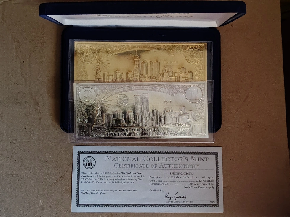 Sep 11th Silver/Gold Leaf Coin, 1 Silver, 1 Gold Leaf COA π