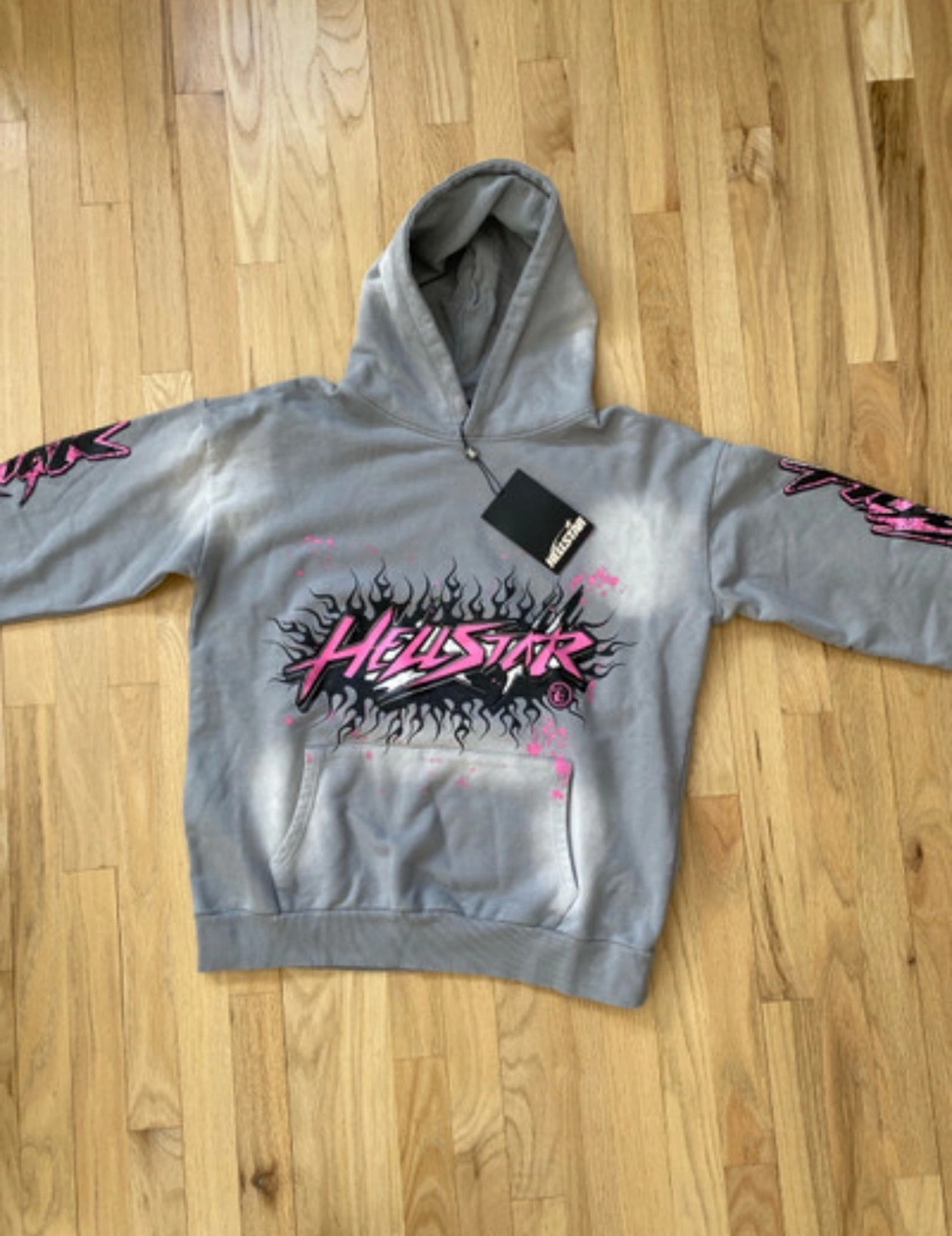 Future Flame Hellstar hoodie. Features pink and black graphic design. Includes tags and bag. Long sleeves, pullover style.