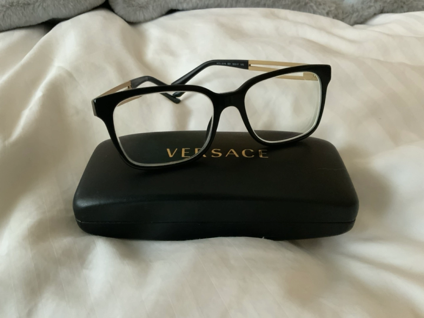 Women's eyeglasses. Black frames with gold accents. Includes case. Made in Italy. You can add your own prescription lenses.
