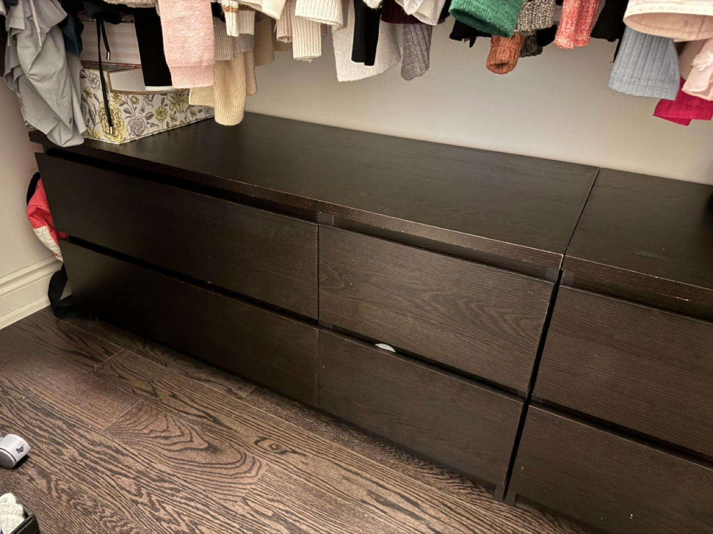 There’s 2 dressers I put side to side in my walk in closet. Price is for one but can sell both. Amazing for extra storage for the closet since it’s a low height.